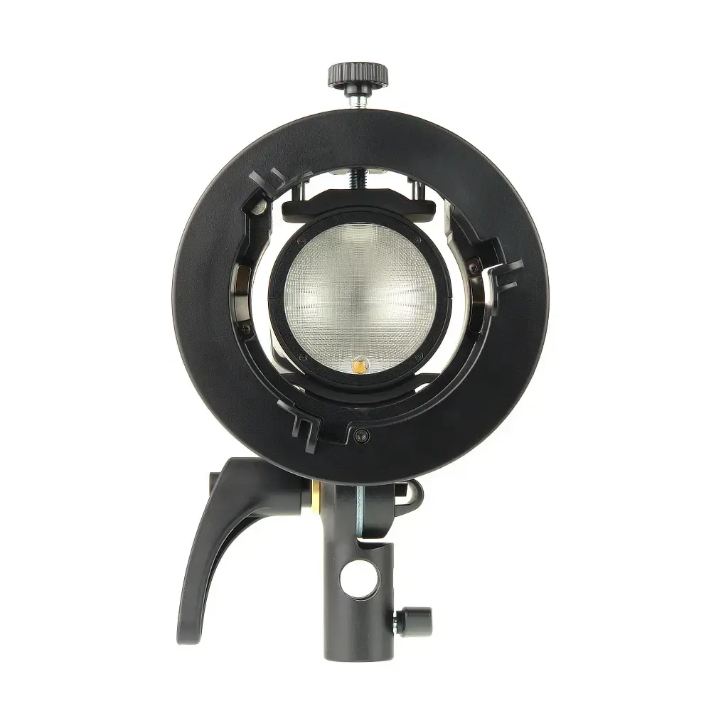 Godox S2 позволит раскрыть максимальный потенциал накамерной вспышки при работе с сотфбоксами, портретными тарелками, рефлекторами, конусами, фотозонтами и т. д. Кронштейн наклоняется почти на 180° и имеет крепление 5/8" для монтажа на стойке.