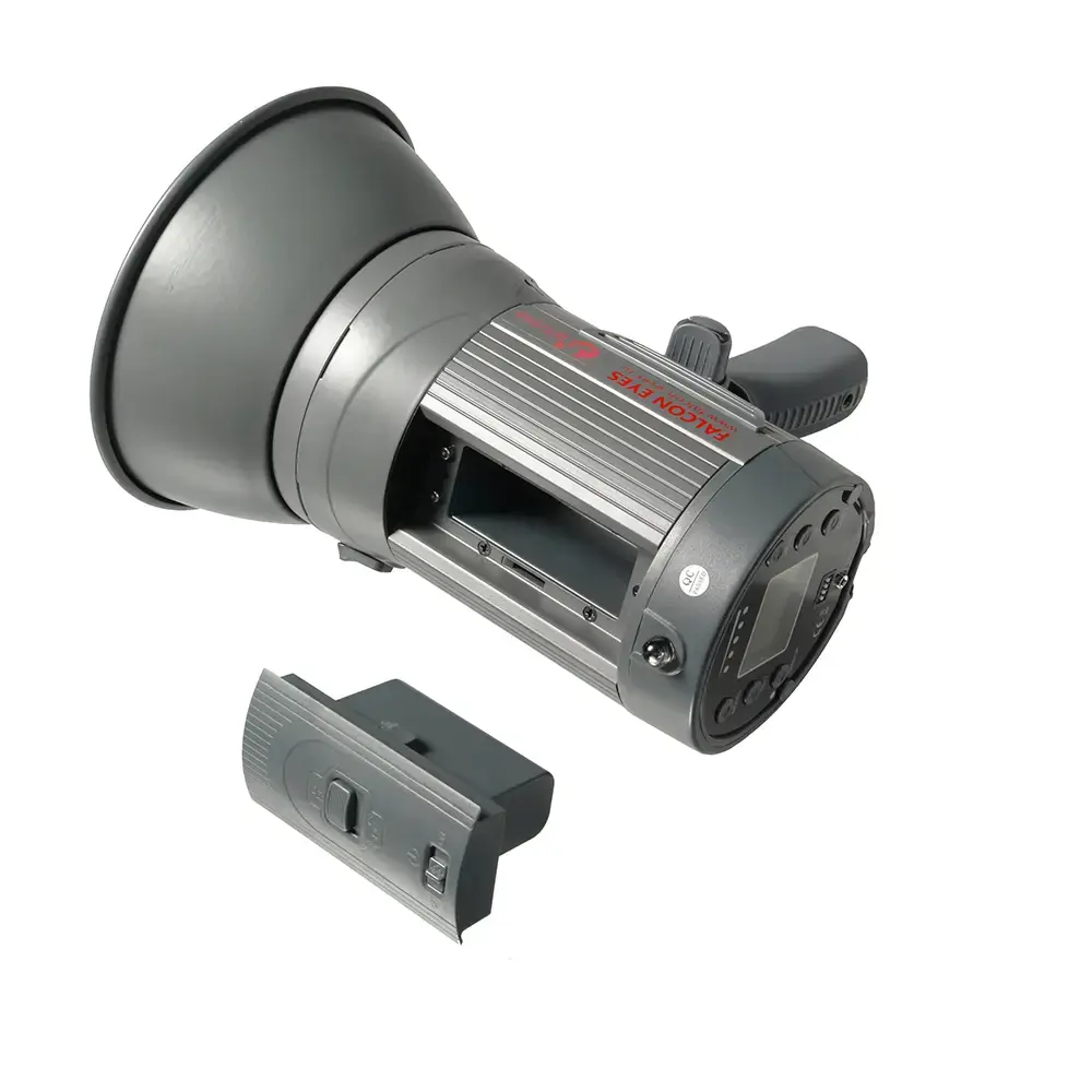 Моноблок GT-280 работает от аккумулятора, который размещается в корпусе, это делает данный моноблок мобильным и увеличивает возможности его использования вне студии. Емкость батареи 2000 мАч, хватает примерно на 300 импульсов при полной мощности (отдельно можно приобрести дополнительный аккумулятор Falcon Eyes AC-GT280). В комплекте поставляется зарядное устройство, батарею можно заряжать только вне моноблока.