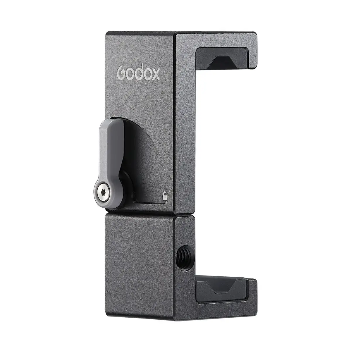 Godox MTH03 – компактный металлический держатель, который может устанавливаться на штатив (например, настольный штатив Godox MT03 или другой держатель с резьбой 1/4''), и использоваться для удержания смартфона. Камера смартфона, установленного на держатель Godox MTH03, может производить фото-видеосъемку вертикальной или горизонтальной направленности.