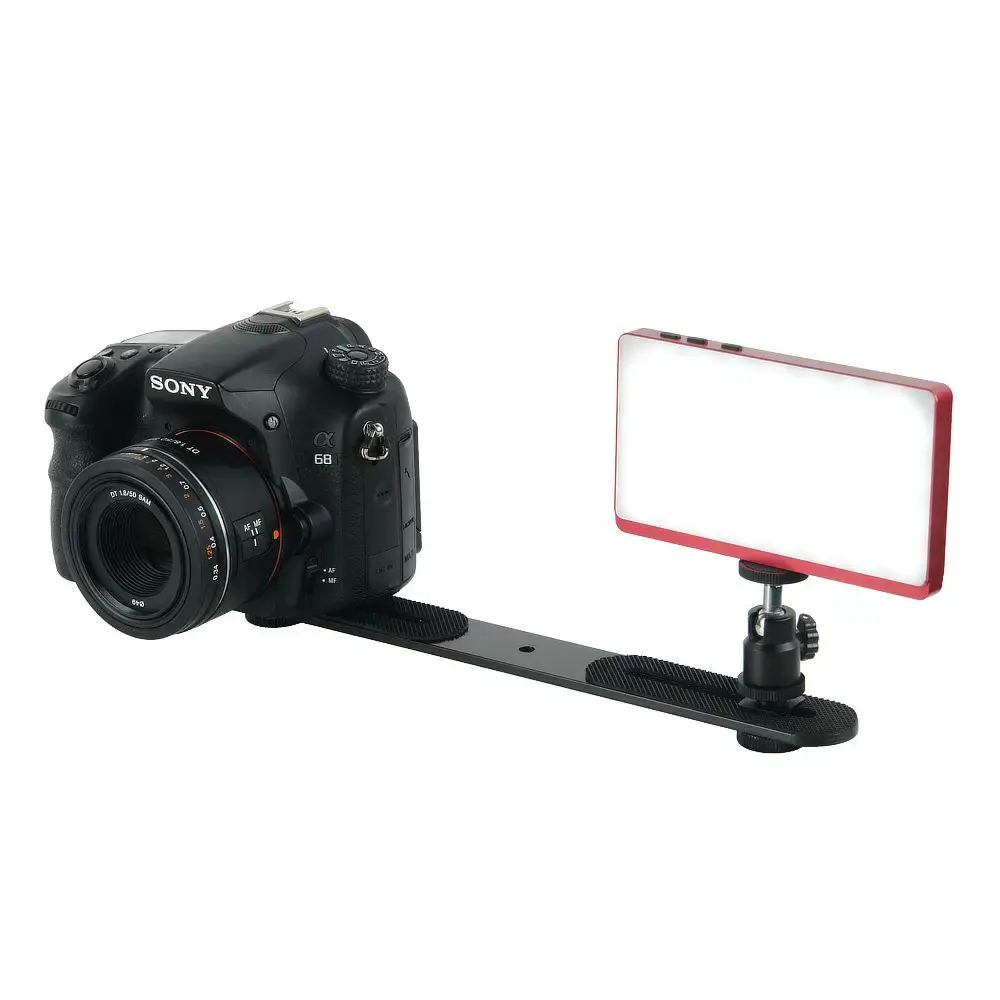 Держатель консоль Falcon Eyes TMB-30D используется для организации двух посадочных мест с резьбой 1/4". Устанавливается на любую опору (стойка, штатив, кронштейн и т. д.) с винтовым креплением 1/4", общая длина 27 см. Два подвижных крепления позволят отрегулировать положение оборудования не снимая его консоли. Резиновые накладки для предотвращения скольжения оборудования.