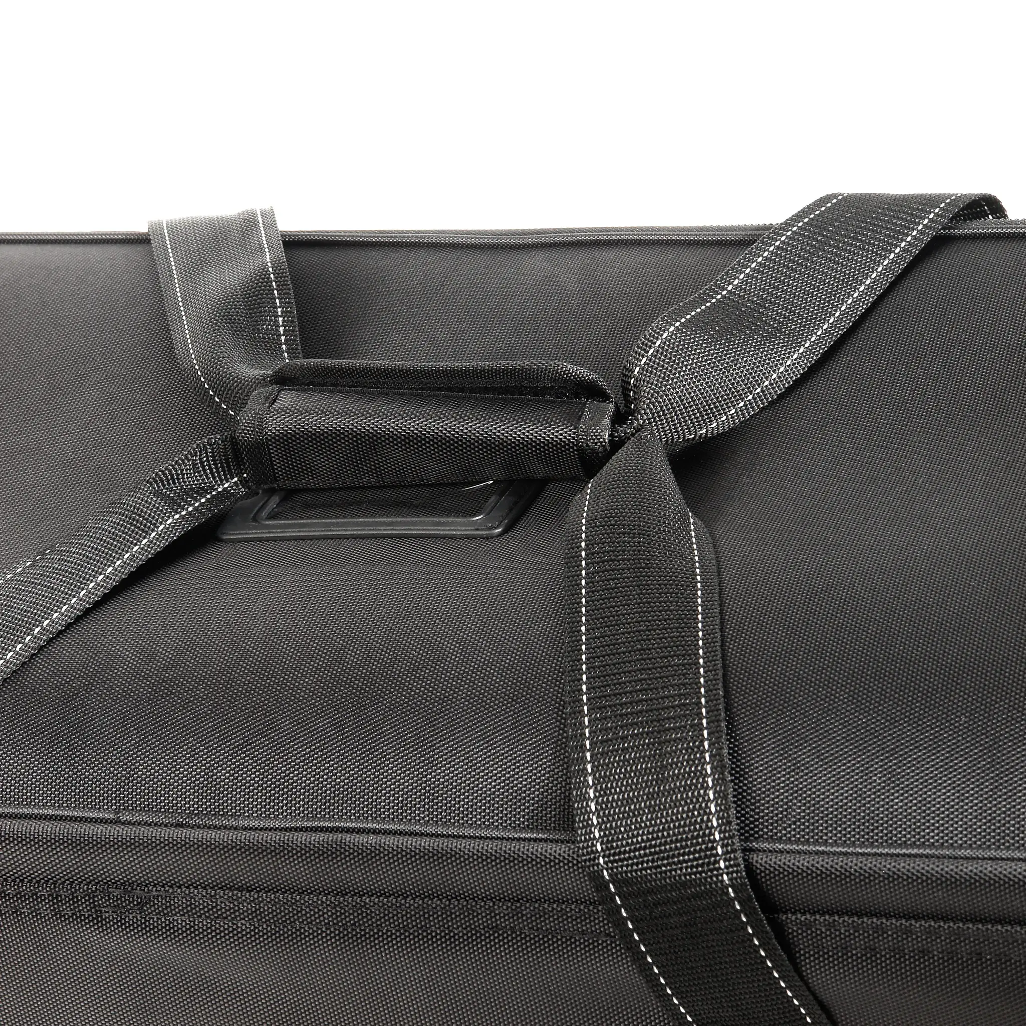Крепкие ручки для переноски можно соединить между собой стяжкой на липучке. Два колеса на подшипниках, а также пластиковая складная ручка для перевозки обеспечивают максимальное удобство при использовании.