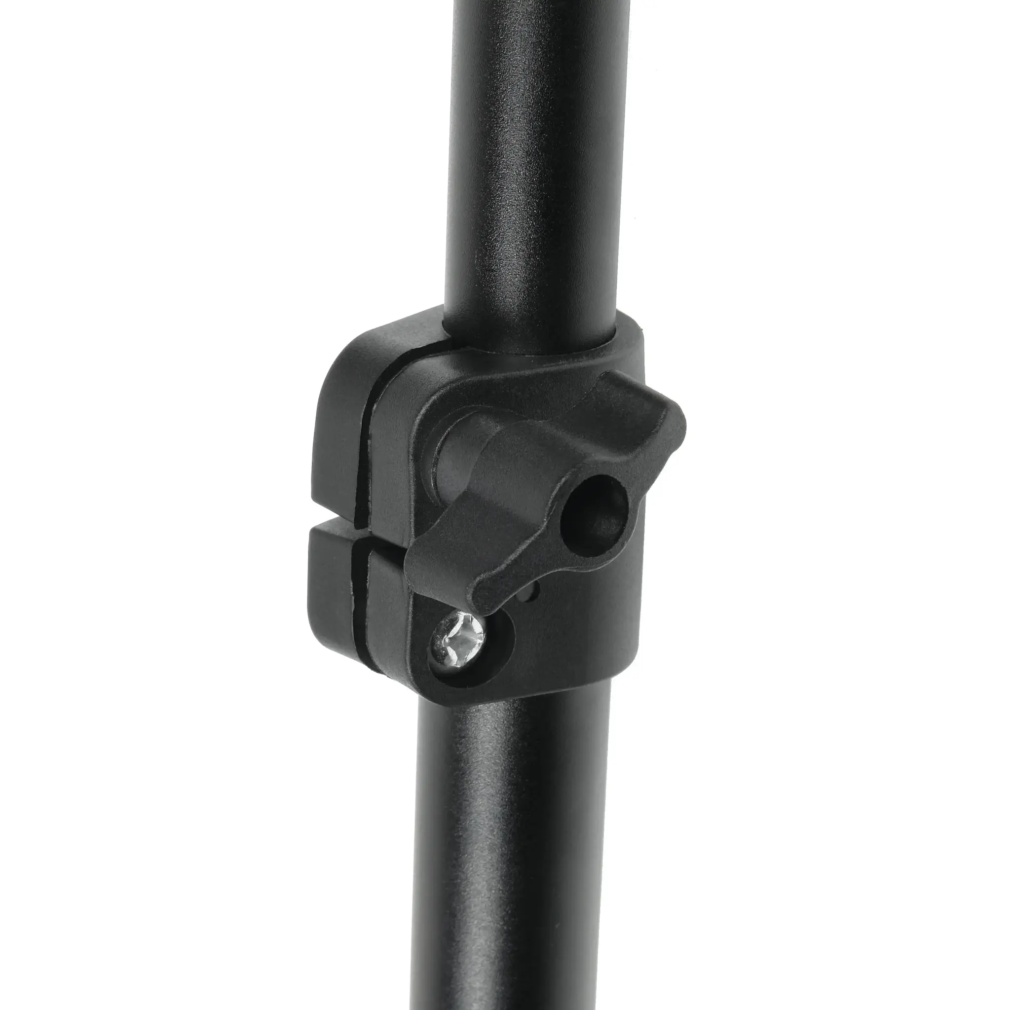 Кронштейн состоит из 2 секций Ø19 и 22 мм, высота установки регулируется выдвижением секции в пределах от 30 до 50 см. На одном конце секции закреплен несъемный стальной установочный шпигот 5/8" с винтом 1/4", на другом – винт 3/8".