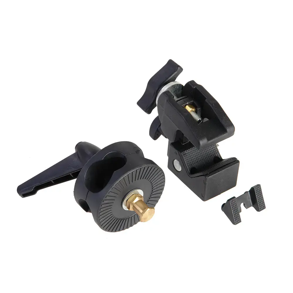 Муфта EC-28CL поворотная с зажимом Муфта Falcon Eyes EC-28CL поворотная с зажимом предназначена для использования со штангами различных диаметров (19, 22, 25, 28 мм). Муфта позволит соединить плоскую поверхность (толщиной до 35 мм) и трубу или две трубы (например: стойку и штангу) между собой, в нужном положении и под различными углами. Зажим изготовлен из металла, муфта из прочного удароустойчивого пластика с резиновыми уплотнителями, оснащена рукояткой, работающей по принципу накидного гаечного ключа.