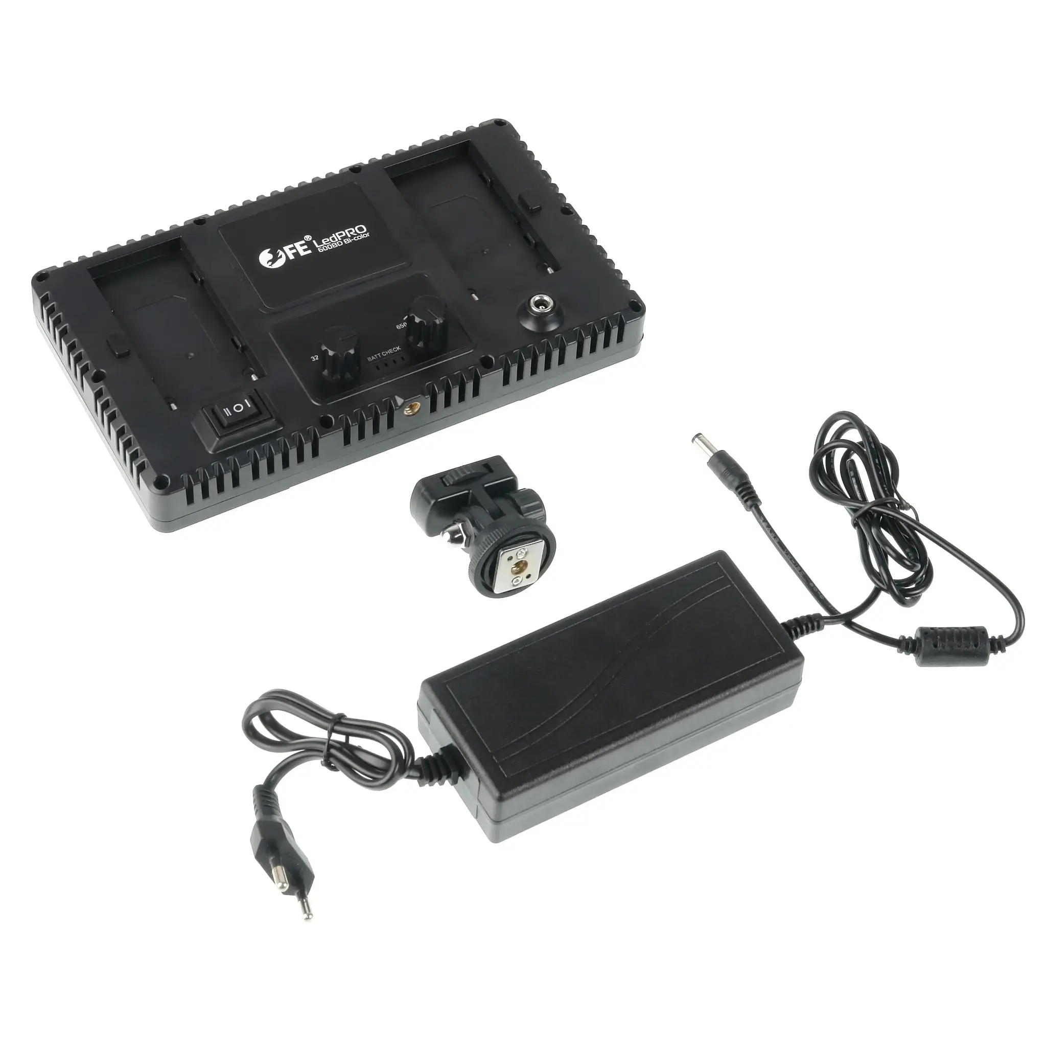 Осветитель питается от стандартной сети 220 В при помощи комплектного сетевого адаптера. Также на корпусе осветителя предусмотрена аккумуляторная площадка на два слота, обеспечивающая возможность питания от аккумуляторных батарей типа NP-F (приобретаются дополнительно).