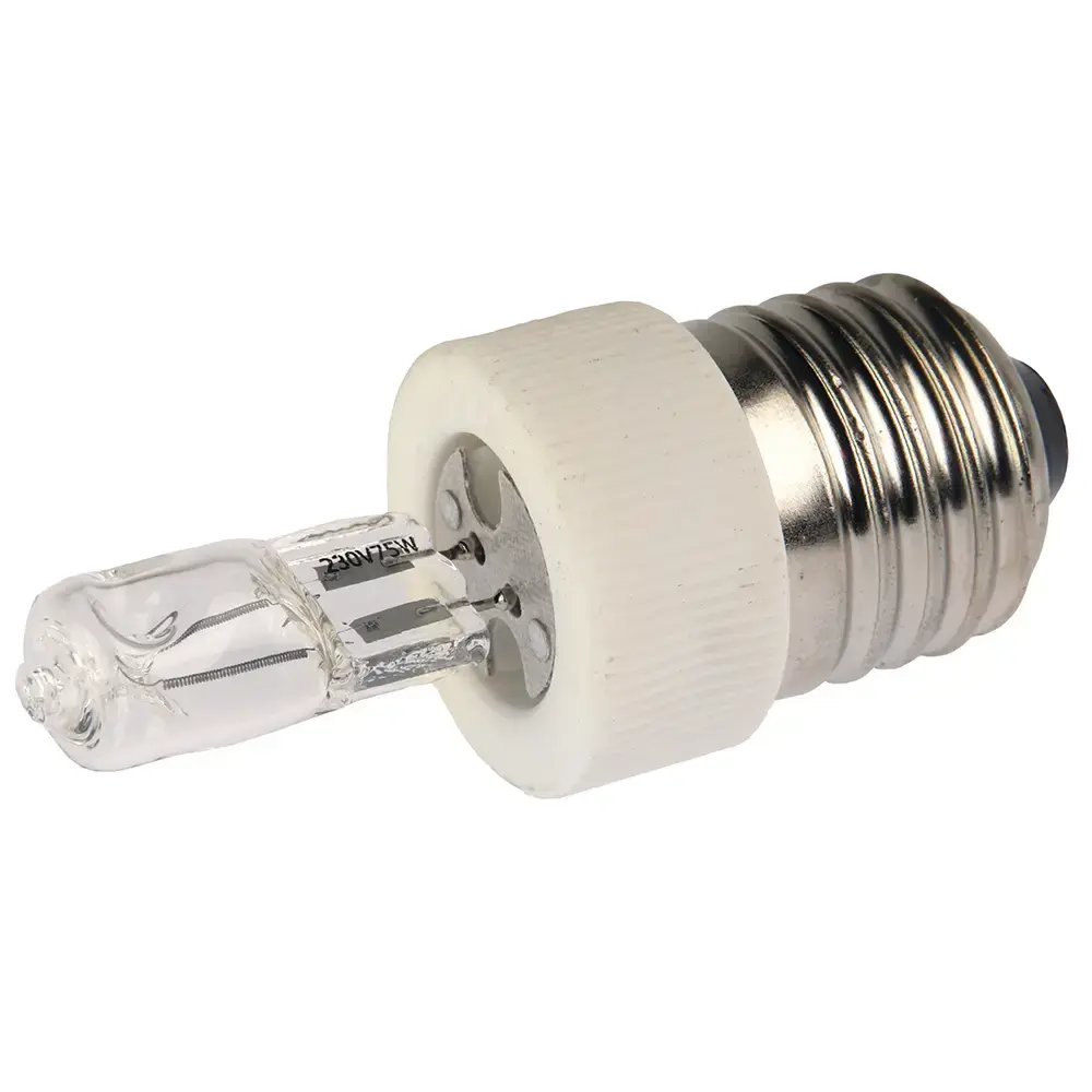 Переходник AD-E27 G 6.35 Адаптер для установки галогенных ламп с цоколем типа G 6.35 в патрон типа Е27. Внимание! Перед установкой убедитесь в возможности использования высокотемпературной галогенной лампы с вашим осветительным прибором.