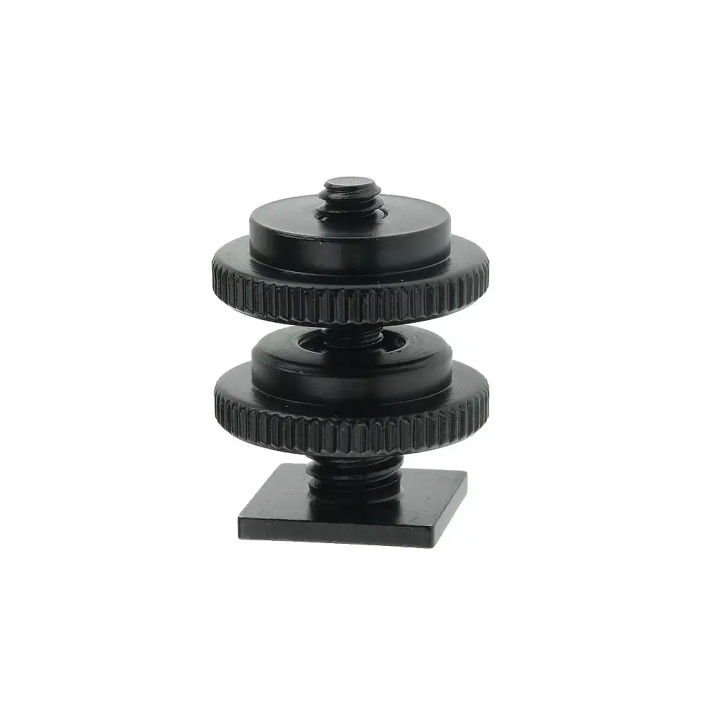 Falcon Eyes FLH-20HS – металлический переходник для установки в холодный или горячий башмак аксессуаров и оборудования с резьбовым отверстием 1/4". Например, с помощью переходника можно на камере закрепить накамерный осветитель, микрофон или монитор.