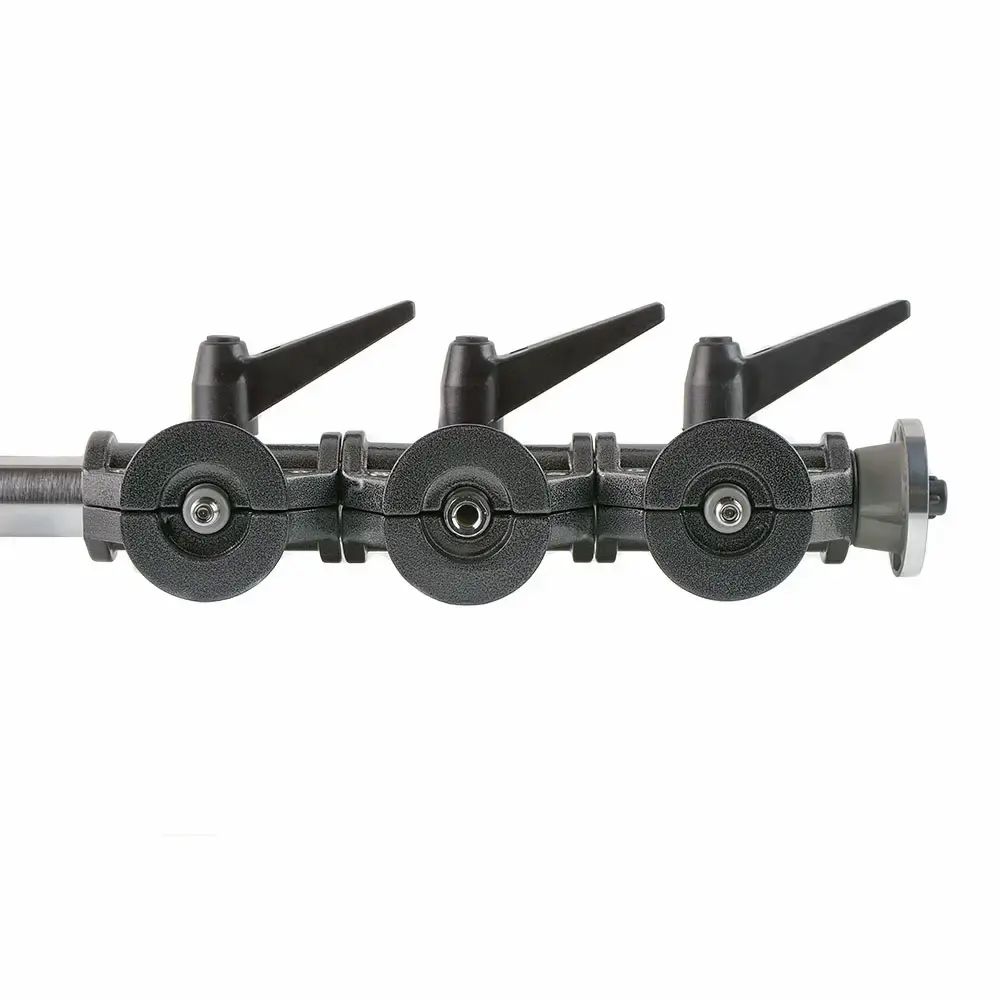 Две перемещаемые головки с креплением с резьбой 1/4“ и переходной гайкой с 1/4“ на 3/8“ предназначены для установки оборудования. Головки, как и центральная площадка, имеют возможность не только перемещаться по штанге, но и вращаться на ней. Фиксация положения производится рукоятками (с храповым механизмом) на корпусе площадки или головок.