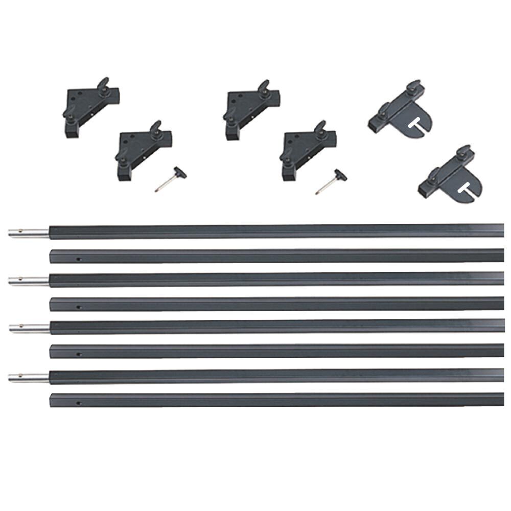 Kupo KH-08 - разборная фростовая рама 2,4х2,4м из алюминиевого профиля квадратного сечения 30мм, быстро разбирается и собирается для удобного хранения и транспортировки. В комплект входят монтажные пластины с Т-образным пазом (FH10), совместимые с крепежными головками типа Grip Head для установки на стойки, что позволяет создать устойчивую раму для шелковых экранов, сеток и многого другого. Из этого набора для сборки фрост-рамы размером 2,4х2,4 метра можно также собрать фрост-раму размером 1,2х1,2 метра. Если вам нужно снизить контрастность или выровнять интенсивность окружающего света, в этом наборе есть все необходимое для создания надежной рамы под модификатор освещения.