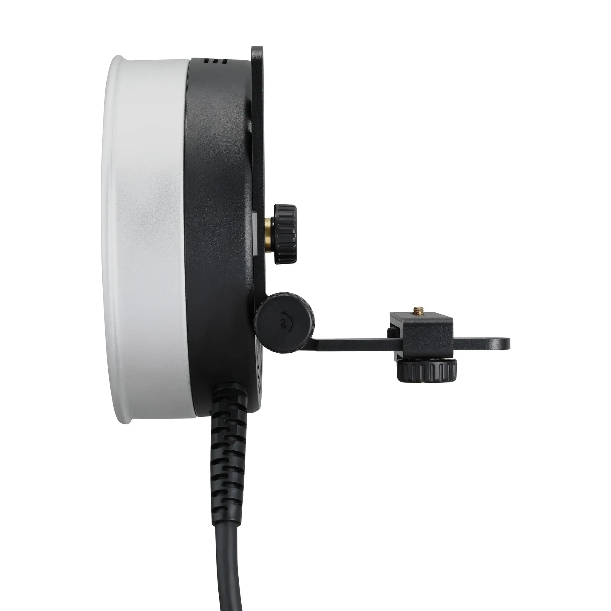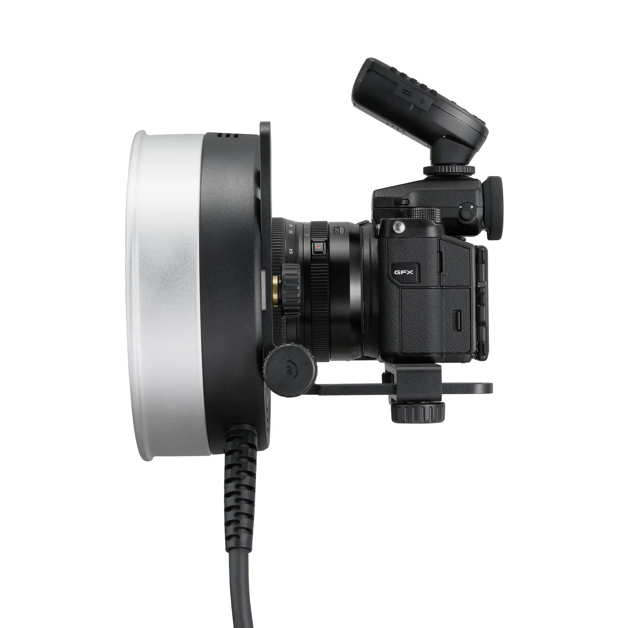 Кольцевая голова Godox Witstro R1200 устанавливается и используется в нескольких вариантах. Легкий импульсный источник весом всего 1.76 кг, можно установить на фотокамеру с помощью комплектного кронштейна FLB-02, что даст фотографу полную свободу в выборе ракурса при съемке.