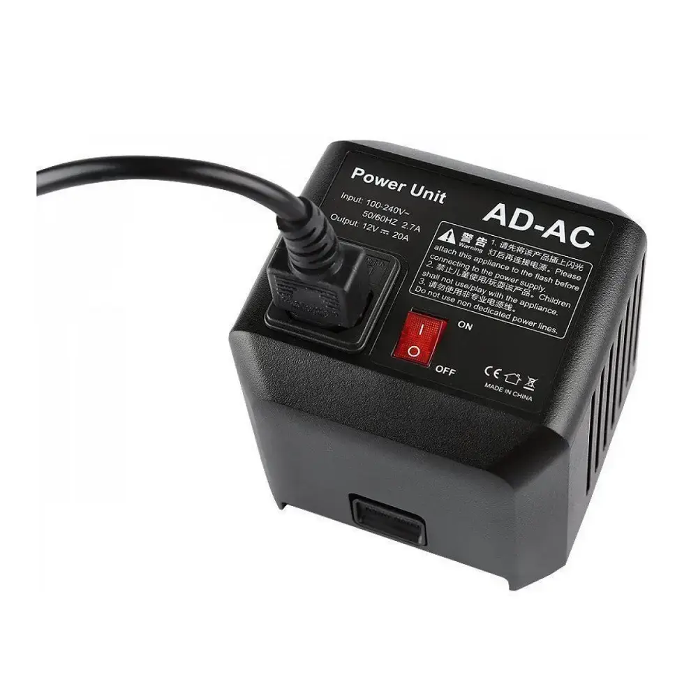 Адаптер постоянного тока Godox AD-AC предназначен питания от сети переменного тока вспышек Godox AD600, AD600M, AD600B, AD600BM, а также аккумуляторного светодиодного осветителя Godox SLB60W. Может использоваться для питания