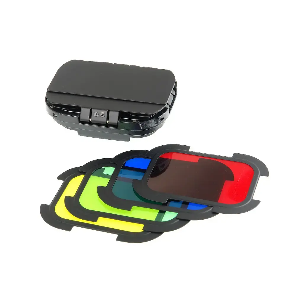 В комплект входит рамка-адаптер с 4-лепестковыми шторками, вкладыш с сотами и цветные фильтры: желтый, красный, синий и зеленый. Рамка-адаптер со шторками крепится непосредственно к передней части вспышки. Лепестки шторок помогают контролировать направление света. Цветные гелевый фильтры используются для различных художественных эффектов.