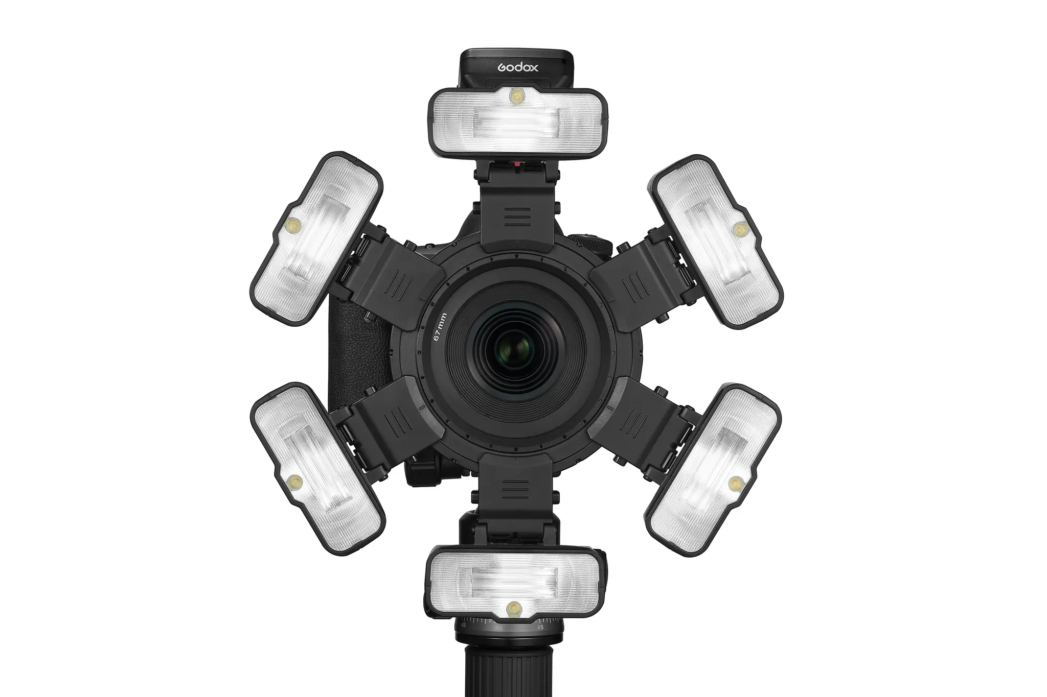 Монтажное кольцо Godox MF-AR предназначено для установки до шести макровспышек Godox MF12 на объективе. Крепление вспышки MF12 имеет специально разработанную наклоняемую конструкцию, при установке монтажное кольцо вспышку можно направить внутрь для освещения узкого пространства прямо перед объективом и съемки объектов экстремально крупным планом.