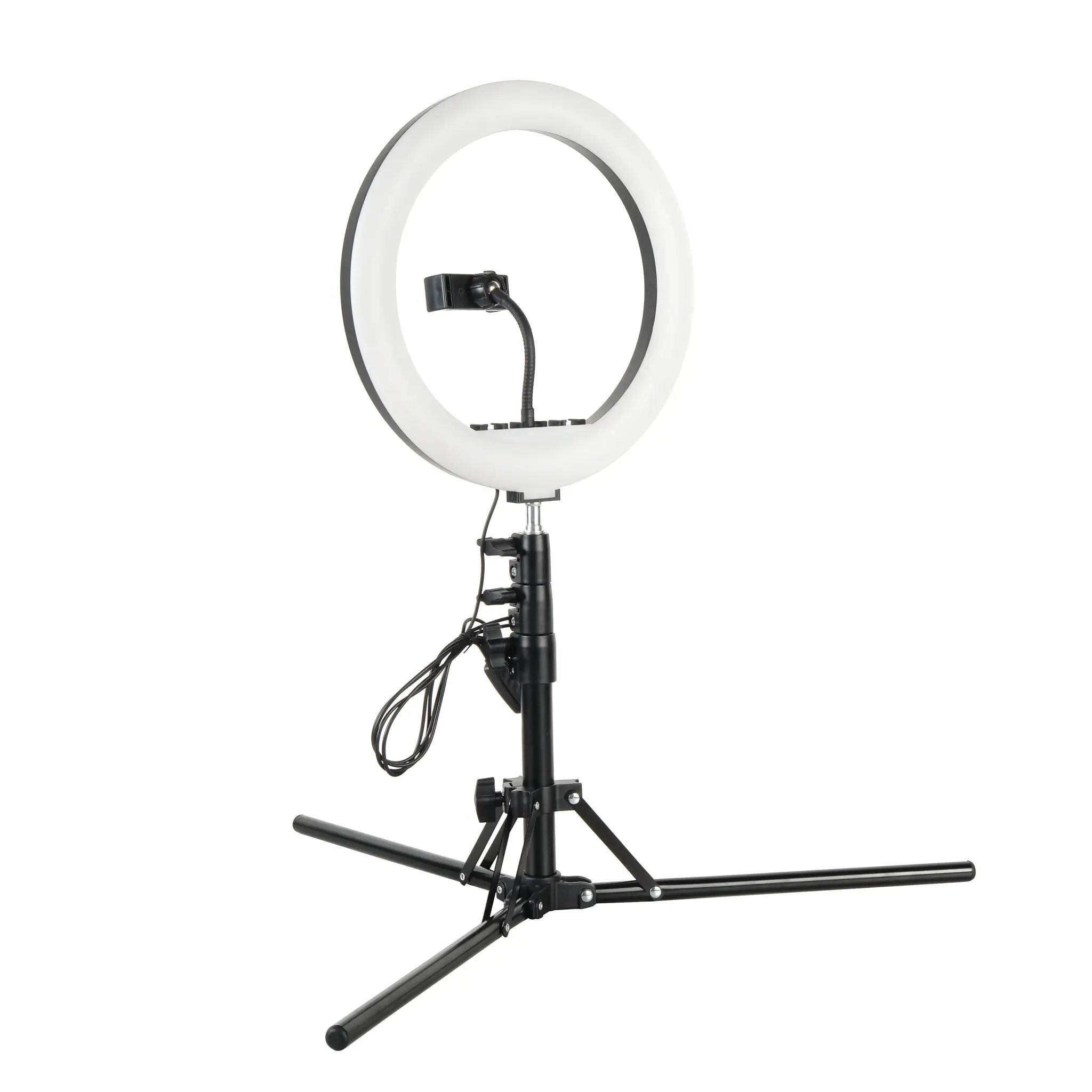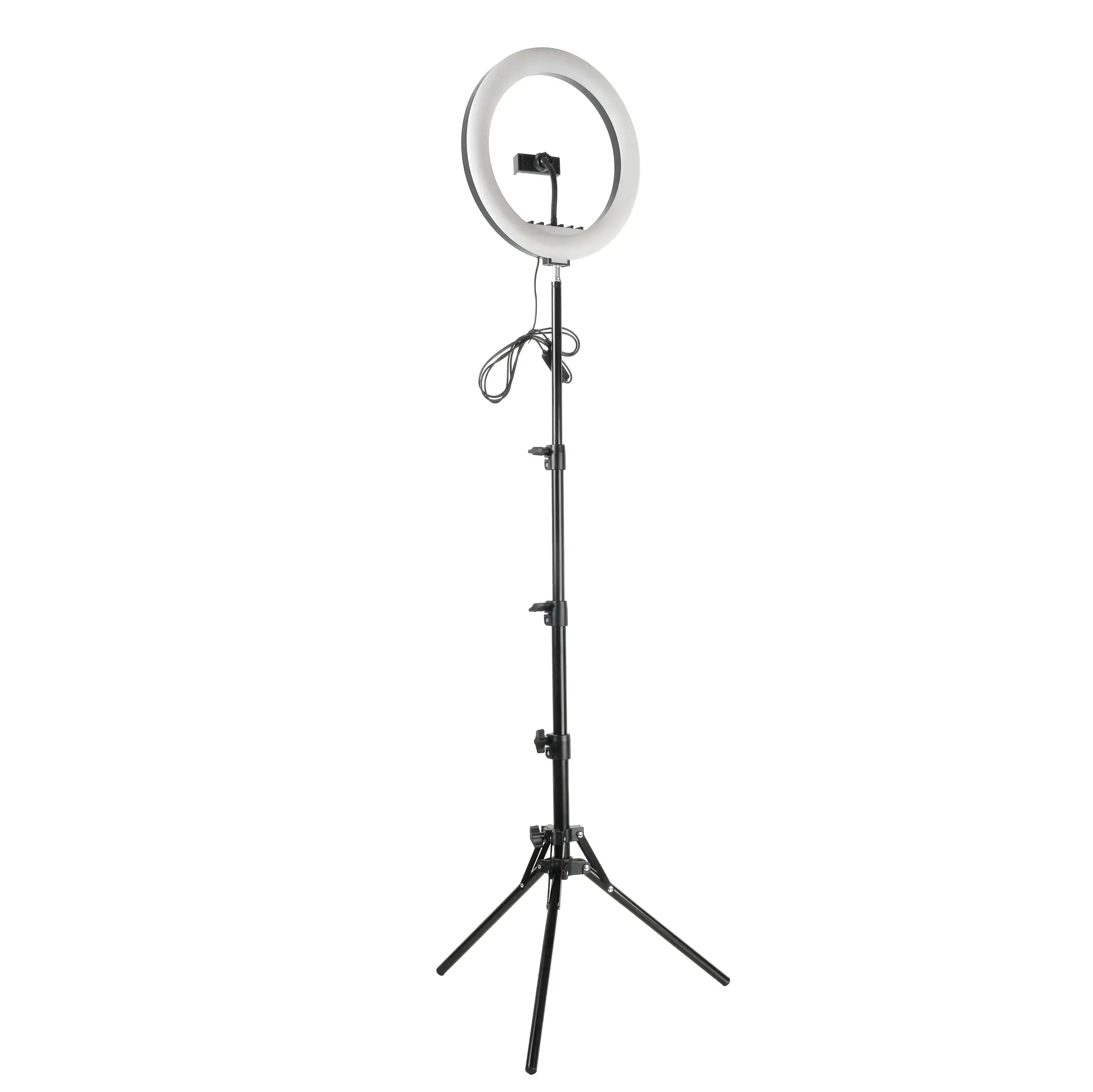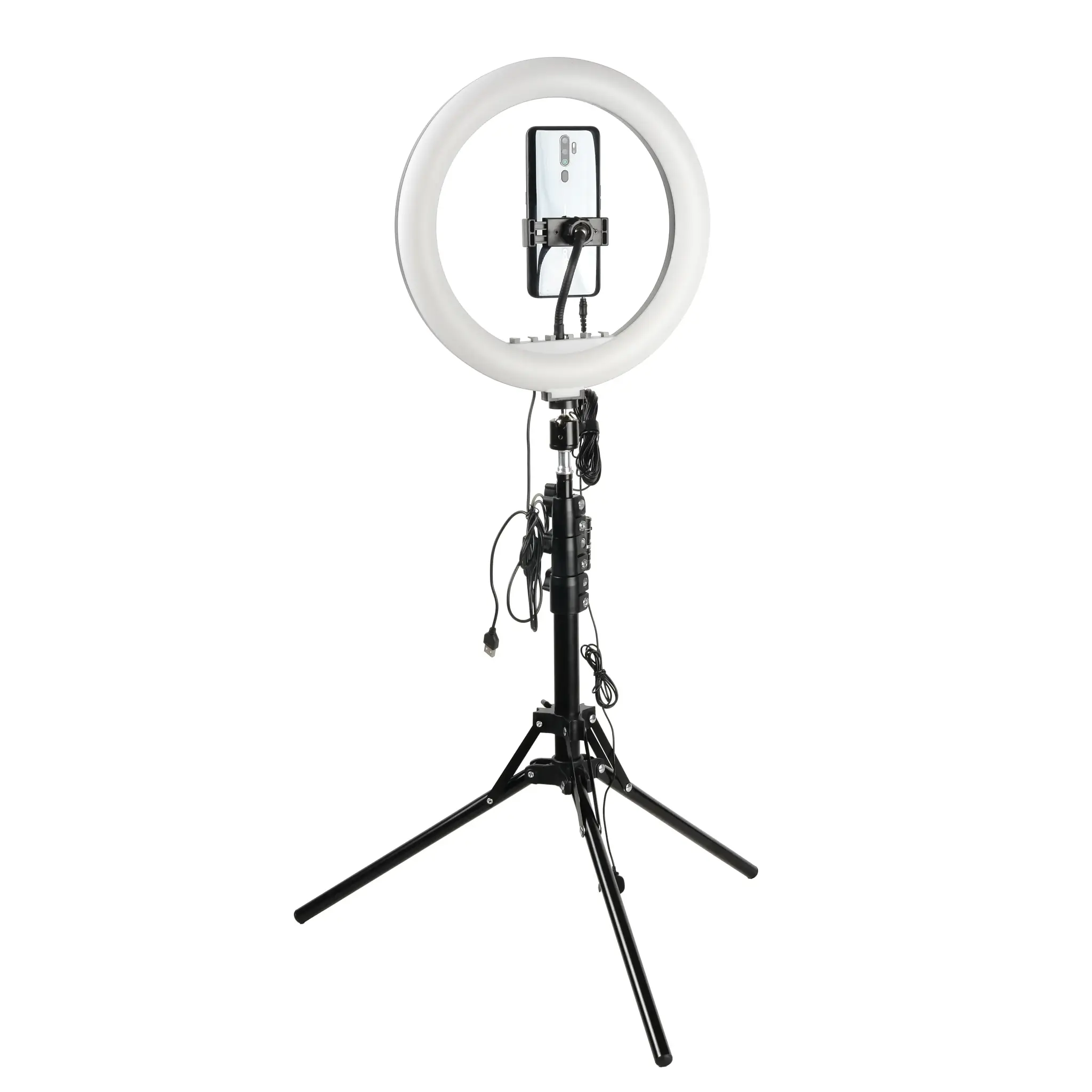 Кольцевой светодиодный осветитель диаметром 12" (30.5см) со 160 светодиодами выдает мягкий равномерный световой поток суммарной мощностью до 20 Вт. 10 ступеней яркости и три режима цветовой температуры («холодный» белый, «теплый» белый и «смешанный» свет), помогают пользователю подобрать необходимый режим освещения в зависимости от творческих задач. Свечение осветителя лишено мерцания на любой ступени яркости по технологии Flicker-Free. Регулируемая цветовая температура также поможет подстроиться под естественные или искусственные источники освещения. Индекс цветопередачи остается при этом неизменно высоким – CRI≥ 94, обеспечивая естественные цвета снимаемого материала.