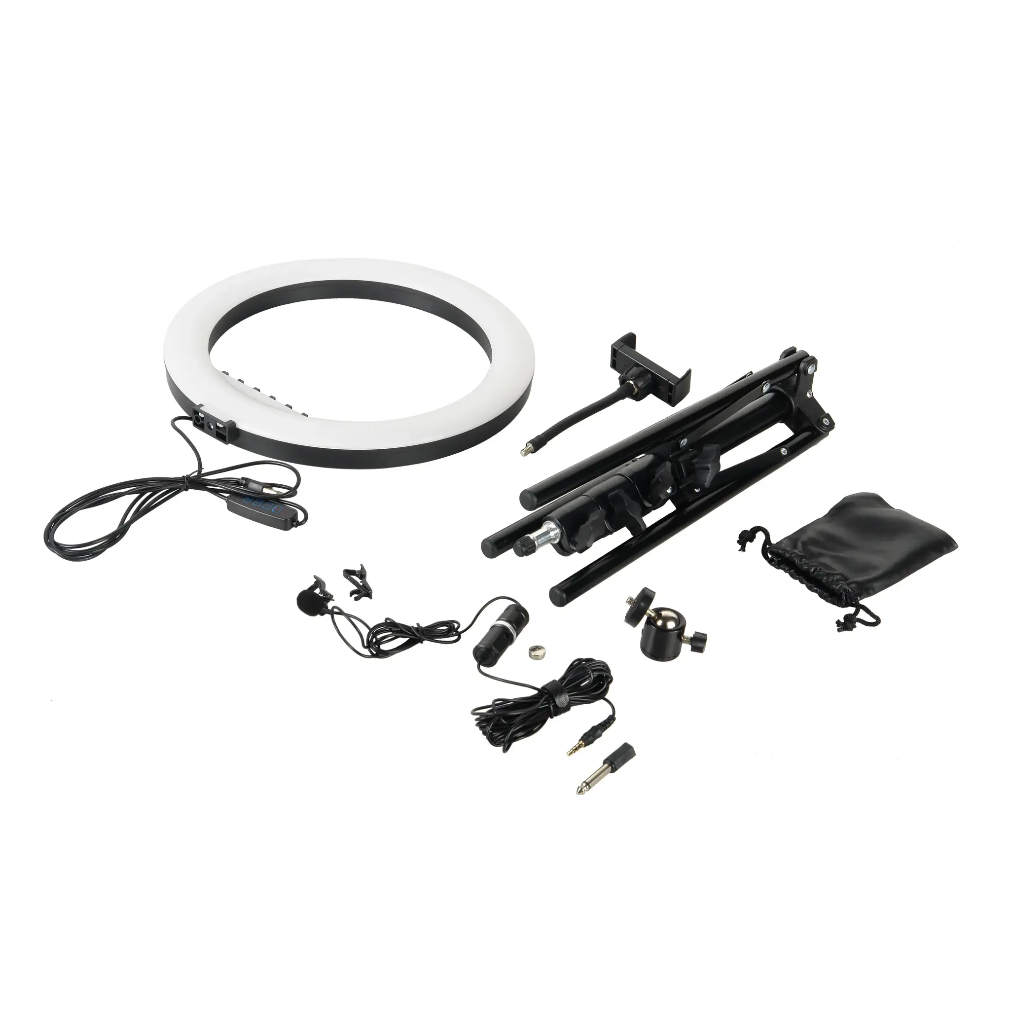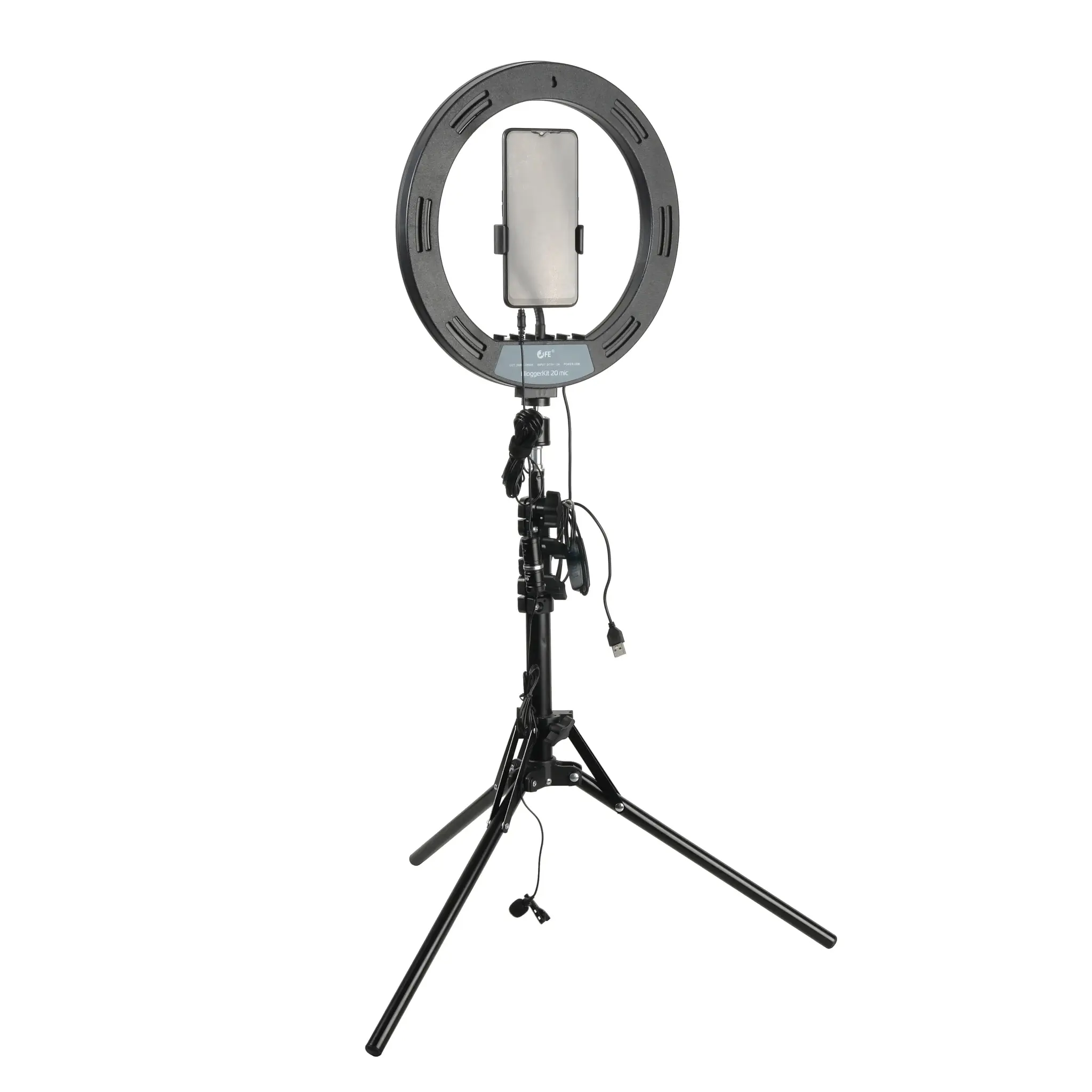 Комплект оборудования Falcon Eyes BloggerKit 20 mic для видеосъемки поможет быстро организовать видеозапись или трансляцию с помощью камеры смартфона. В комплект входят штатив, кольцевой осветитель и профессиональный петличный микрофон, чтобы улучшить качество изображения и звука снимаемого видеоконтента.