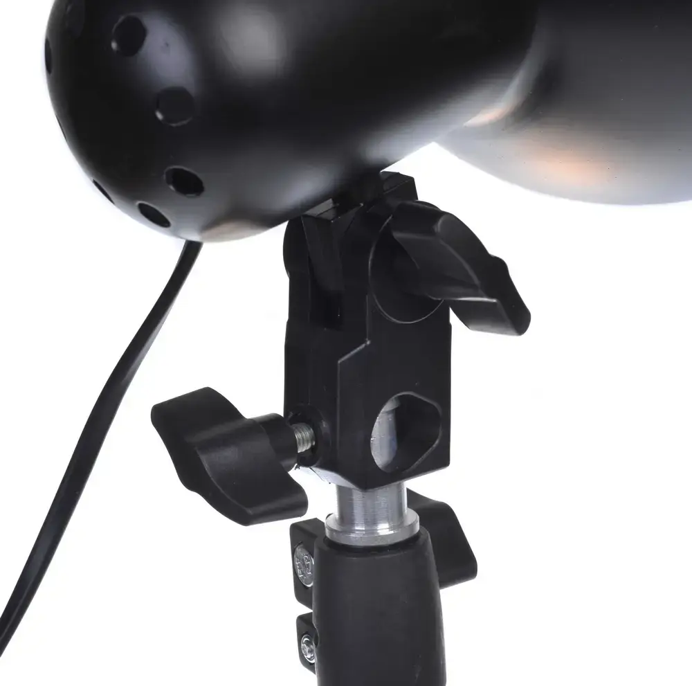 Фотобокс размером 40х40х40 см с матовыми полупрозрачными стенками дает возможность бестеневого освещения объекта, а одновременное использование двух источников постоянного света позволяет правильно оценить рисунок освещения. Осветители из комплекта рассчитаны на использование с флуоресцентными лампами с цоколем E27, в комплекте 2 лампы мощностью по 40 Вт (эквивалент, цветовая температура 5500К). Для установки осветителей в комплект входят две стойки высотой 40 см.