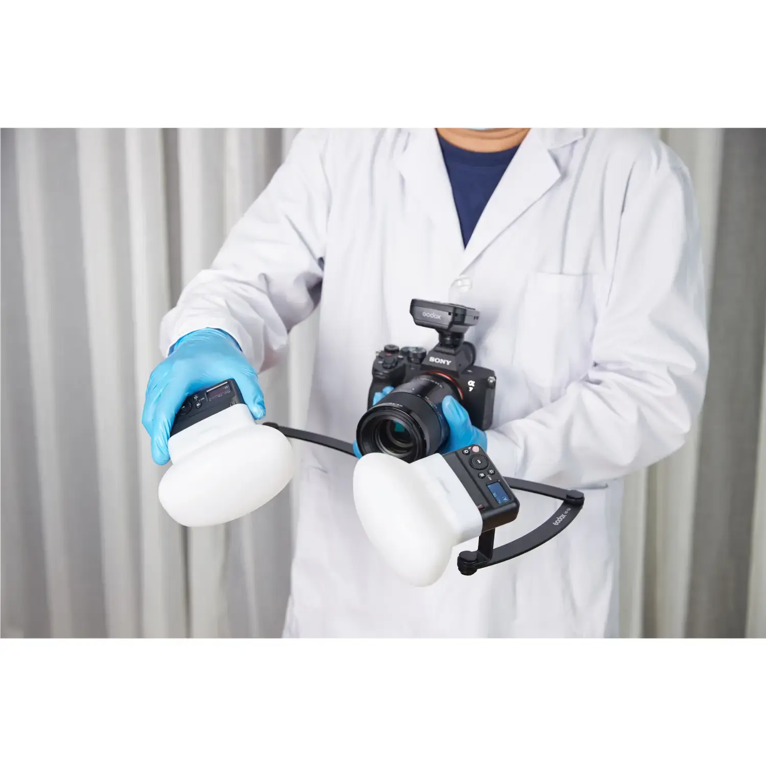 Комплект импульсных осветителей Godox MF12-DK3 создан, чтобы обеспечить равномерное освещение для фотофиксации результата стоматологического лечения.
