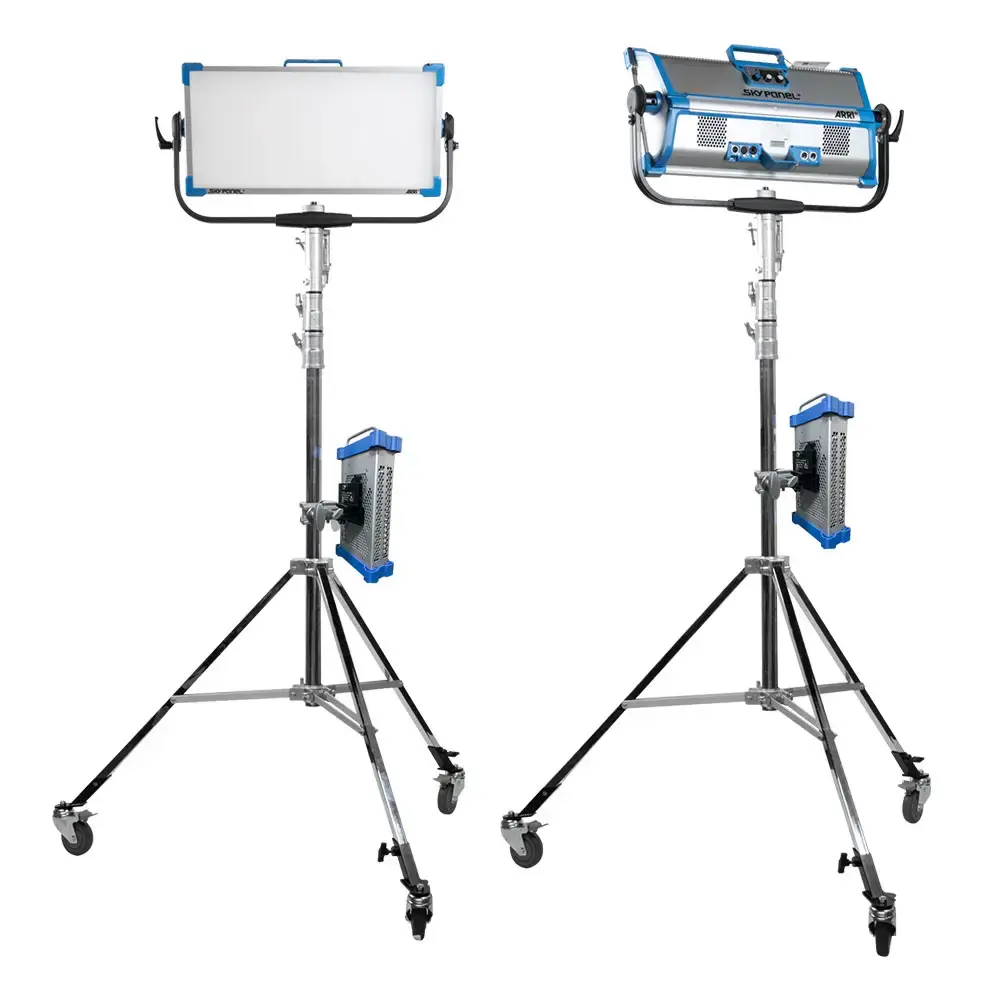 Колеса позволяют удобно передвигать стойки, кроме того, они защищают пол и снижают шум на съемочной площадке. Благодаря им становится легче переставлять осветительные приборы. Этот комплект состоит из трех колес диаметром 3-15/16" (100 мм), предназначенных для установки на квадратные ножки размером 25х25 мм. Адаптер для крепления ножки изготовлен из прочного металлического профиля, а широкая алюминиевая рукоятка гарантирует стабильную и надежную фиксацию. Колеса оснащены тормозом с широкой педалью тормоза, который предотвращает их прокручивание, надежно фиксируя стойку на месте.