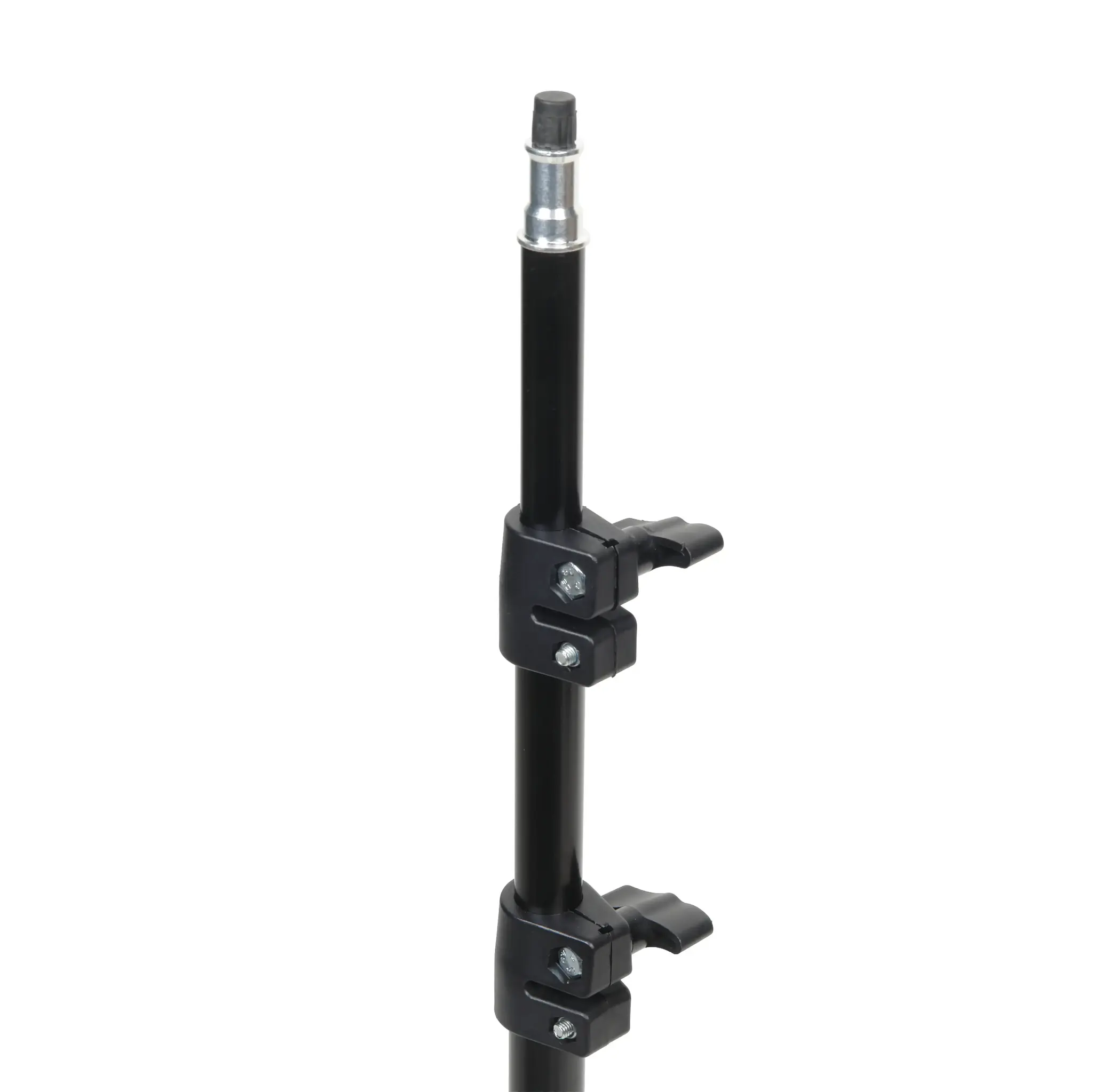 Осветитель крепится на стойку L-2000 через стандартный шпигот 5/8” и фиксируется винтом. Максимальная высота стойки 200 см, минимальная – 75 см. Алюминиевые трубки складных телескопических секции диаметром 15/18/22 мм фиксируются винтовыми зажимами.