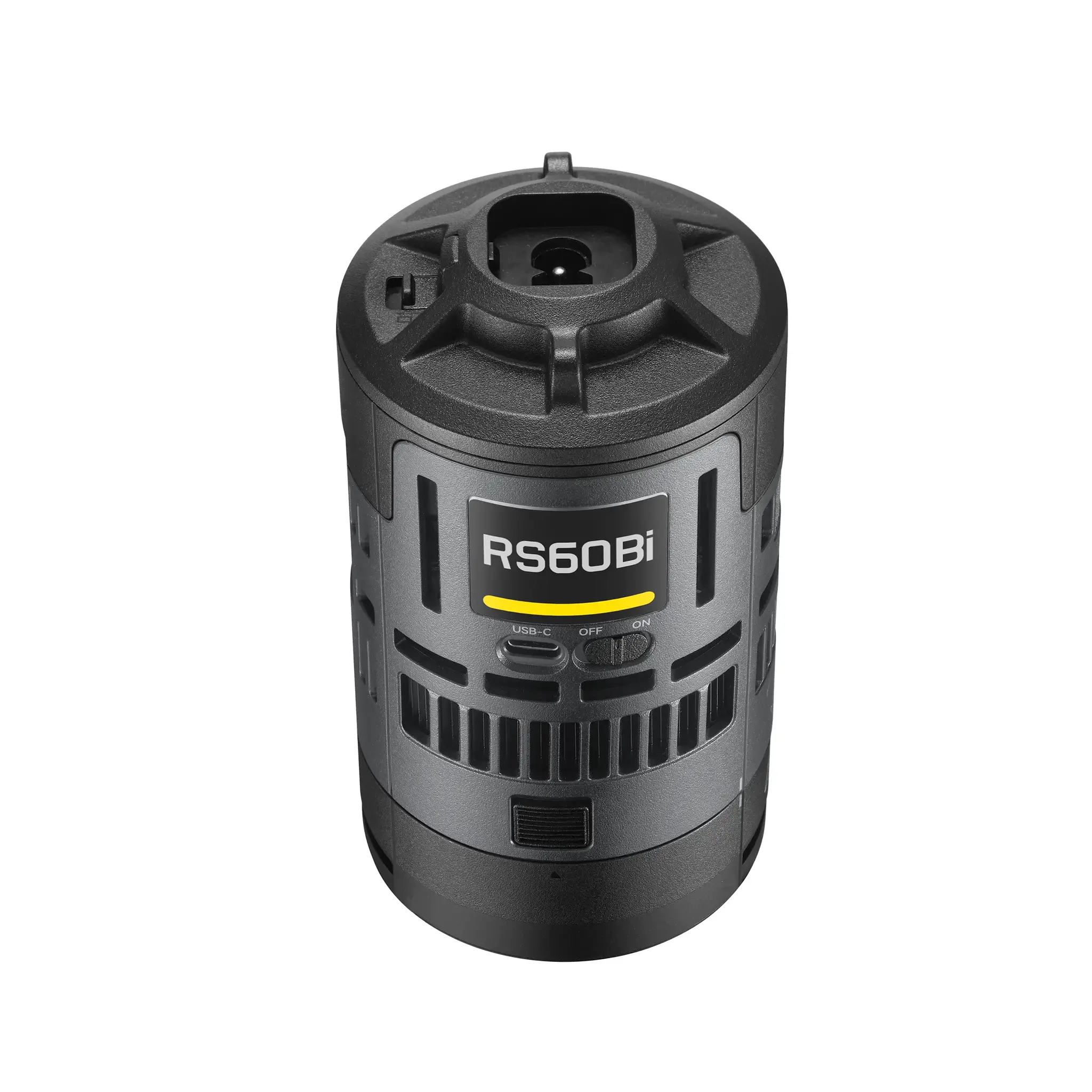 Осветитель RS60Bi мощностью 60 Вт представляет собой компактное решение с двумя раздельными светодиодными модулями, обеспечивающими плавную регулировку цветовой температуры в диапазоне от 2800 до 6500 К. Мощность прибора составляет 17 400 люкс на расстоянии 1 м при температуре 5600 К.