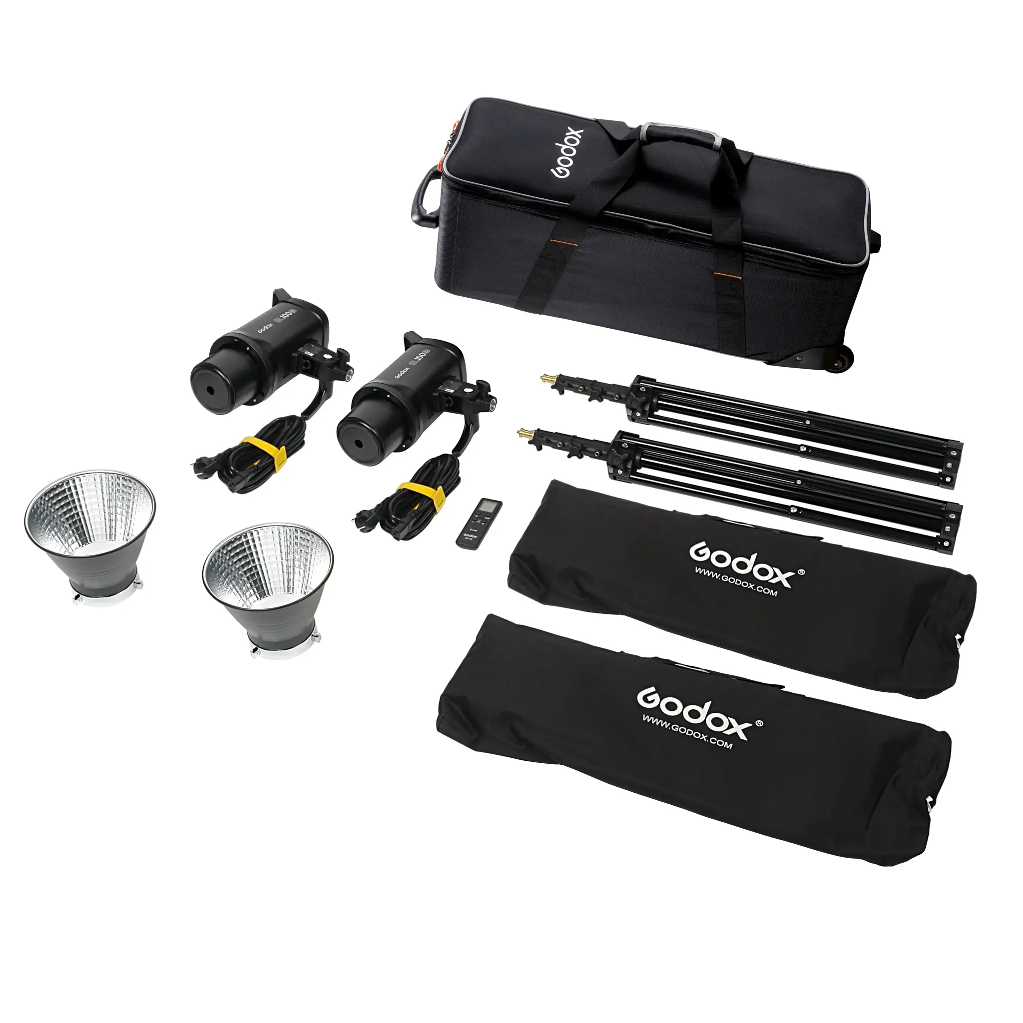 В комплект входит все необходимое, чтобы развернуть мобильную студию в любом месте – два светодиодных осветителя Godox SL100D, две стойки Godox 304, два софтбокса Godox SB-BW6090, пульт дистанционного управления и сумка Godox CB-04 для хранения и транспортировки.