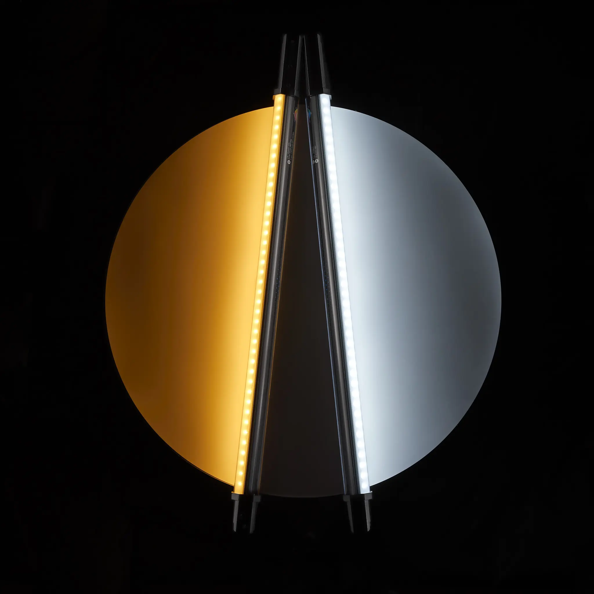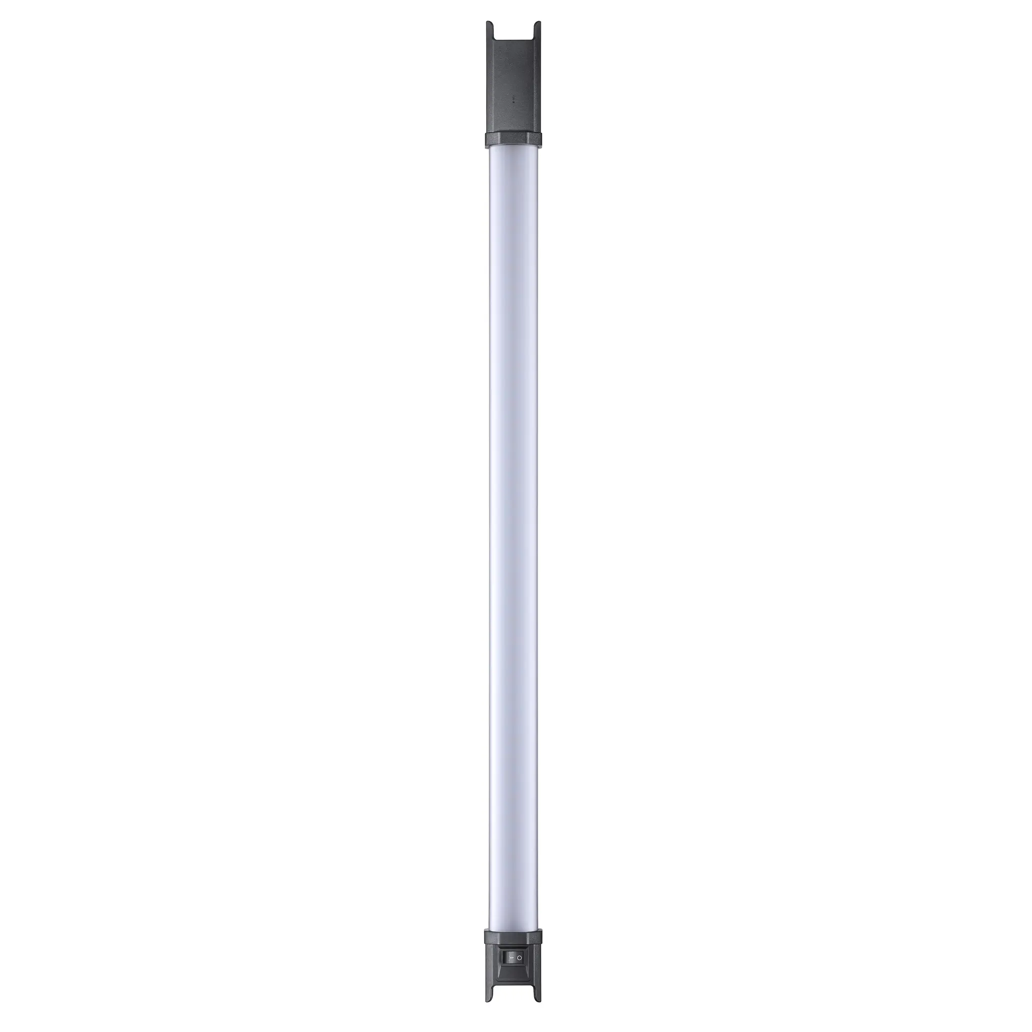 Встроенный литий-ионный аккумулятор обеспечит два часа беспрерывной работы на полной мощности при полном заряде батареи или проработает больше времени, в режиме спецэффектов или если яркость светового потока не будет максимальной. Во время более длительной съемки осветители могут питаться от стандартной электрической розетки 220В при помощи штатного сетевого адаптера. Длина осветителя 75 см и вес 0.7 кг позволят удерживать прибор в руке или закрепить практически в любом месте даже на кинотейп. В комплект также входят пластиковый клипса-зажим для установки осветителя на стойку или риг с резьбой ¼'' и два металлических тросика для подвешивания.