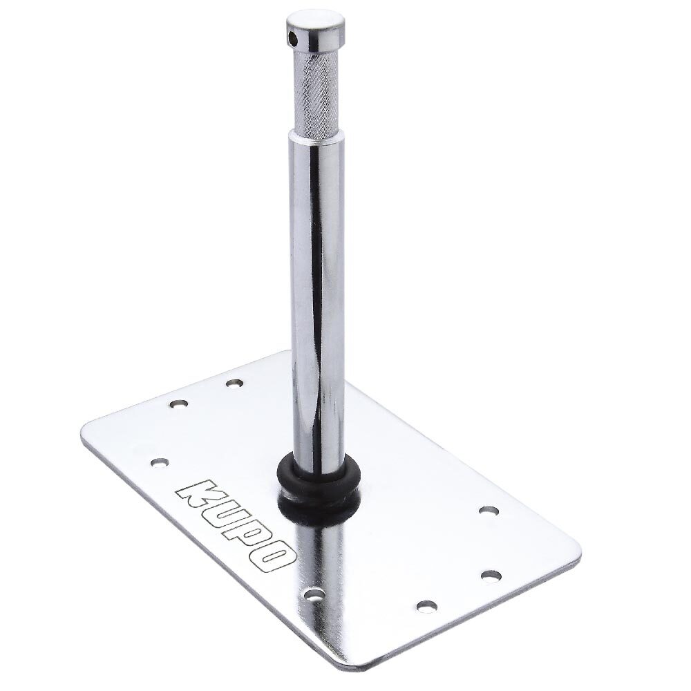 Кронштейн KUPO KS-045 6" BABY WALL PLATE с приваренным прямым штифтом Baby 5/8" (16мм) длиной 6" (15,2см) предназначен для крепления осветительных приборов или другого оборудования на плоских поверхностях, таких как стены, потолки, ящики и т.д. На крепежной пластине размером 9х15см находится 8 отверстий для гвоздей или саморезов.