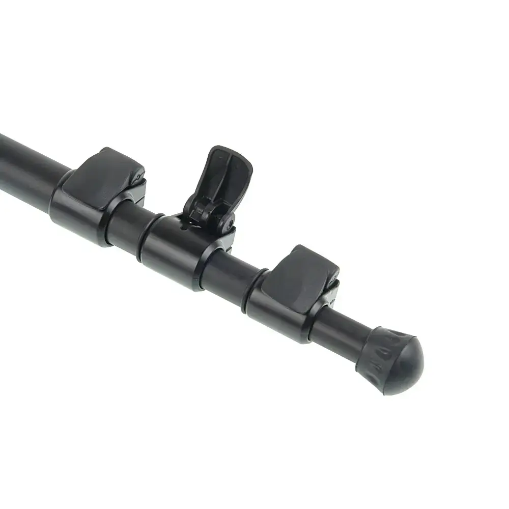 Четыре секции монопода и клипсовые зажимы изготовлены из алюминиевого сплава, «язычки» зажимов из прочного ABS пластика. При ослаблении клипсового фиксатора — возможна регулировка зажима винтом под шестигранный ключ.