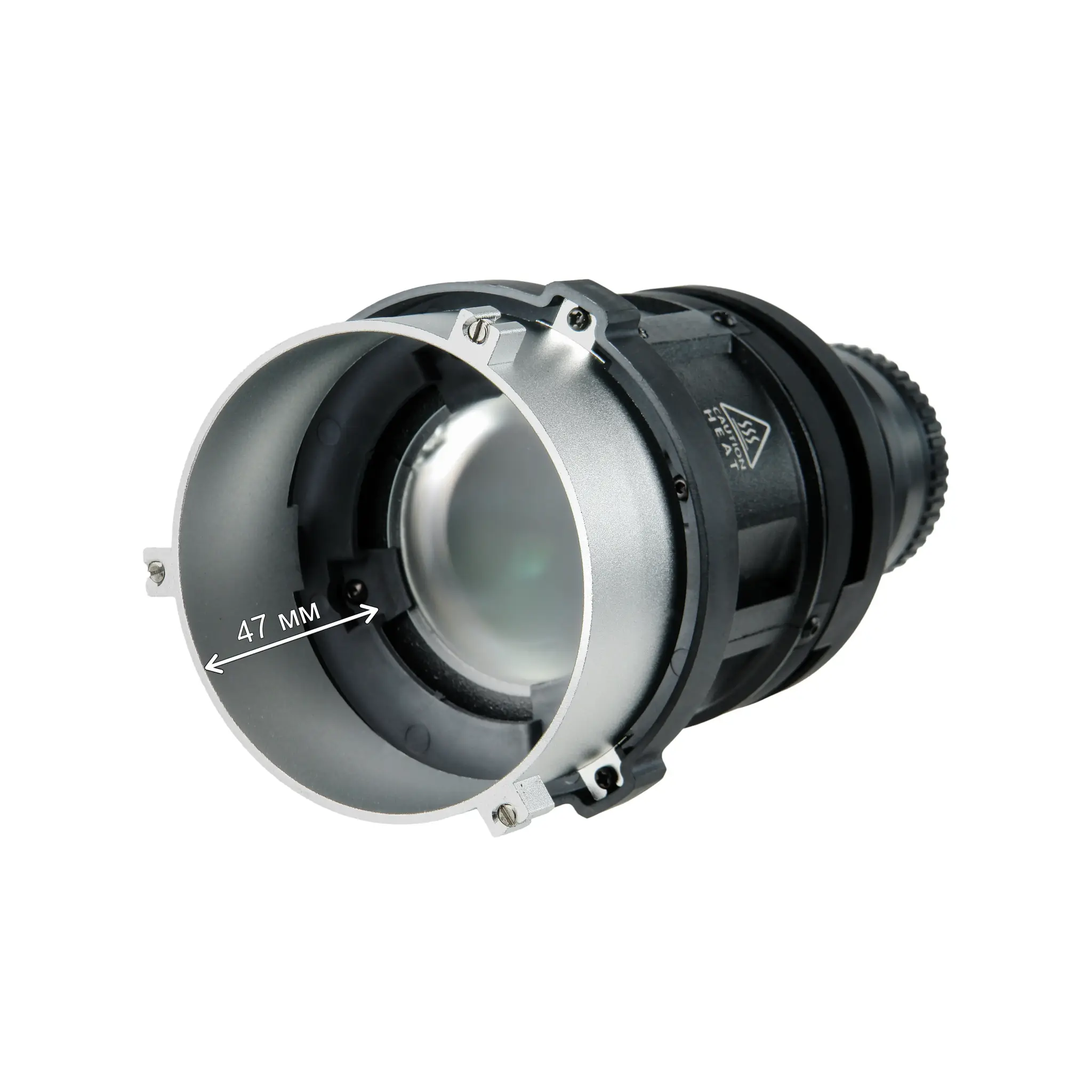 Falcon Eyes FEA-OST6 BW – оптическая насадка для создания регулируемого пучка света за счет линзовой оптической системы (конденсора) и фокусируемого объектива диаметром 40 мм. Оптическая насадка предназначена для создания светового или цветового акцента на объекте или фоне. В комплект входит ирисовая диафрагма, 6 масок Гобо и 4 цветных фильтра. Установка на источник света Насадка устанавливается на источник постоянного света мощностью до 500 Вт с байонетом Bowens. Глубина посадочного места под лампу - 47 мм (расстояние от линзы до края адаптера Bowens). Регулировка размеров пятна С помощью оптической насадки FEA-OST6 BW можно создавать очень яркие, четкие, большие проекционные изображения. Объектив с высоким разрешением позволяет создавать равномерный луч света от центра проекционного изображения к внешней границе, обеспечивая очень незначительный спад освещенности по краям. Также, благодаря фокусируемому объективу с углом обзора 38°, пользователь может увеличивать или уменьшать резкость по краям изображения в широком диапазоне расстояний, что позволяет изменять проекционное изображение от расплывчатого до четкого. Для регулировки размеров пятна и точности среза света необходимо использовать ирисовую диафрагму (в комплекте). Диаметр светового пятна с расстояния 1 м составляет 90 см. С установленной ирисовой диафрагмой диаметр пятна варьируется от 10,5 до 70 см в зависимости от степени закрытия лепестков. Инструменты для креативных эффектов Для создания креативного освещения в комплекте предусмотрены маски Гобо и цветные фильтры, упакованные в удобный кейс. Возможно применение цветных фильтров в комбинации с масками Гобо. Маски Гобо представляют собой трафареты из нержавеющей стали с перфорацией в виде различных рисунков. Маски устанавливаются в насадку с помощью рамки для масок или в слот ирисовой диафрагмы. Комплект из 6 масок Гобо диаметром 58 может быть дополнен масками соответствующего диаметра, например набором Falcon Eyes Gobo 46 или Falcon Eyes Gobo 93. Цветные гелевые фильтры диаметром 58 мм могут устанавливаться перед линзой с помощью съемного кольца, либо в специальный слот ирисовой диафрагмы. Фильтры окрашивают световой круг в красный, синий, зеленый или желтый цвет. Компактный алюминиевый корпус Корпус выполнен из алюминиевого сплава и имеет естественную систему охлаждения (не рекомендуется продолжительное использование с лампами большой мощности). FEA-OST6 BW среди других проекционных насадок выделяется компактностью габаритов и небольшим весом: длина насадки составляет всего 21 см, вес – 0,75 кг. Особенности: • Установочный байонет Bowens • Объектив диаметром 40 мм c регулируемым фокусом • Глубина посадочного места под лампу – 47 мм • Максимальная мощность LED осветителей до 500 Вт • Размер светового пятна на расстоянии 1 м – 90 см • Ирисовая диафрагма для регулировки размеров пятна и точности среза • Маски Гобо и рамка-держатель • Цветные гелевые фильтры и съемное кольцо • Компактные размеры: длина насадки 21 см, диаметр 12 см • Корпус из алюминиевого сплава • Вес 0,75 кг.