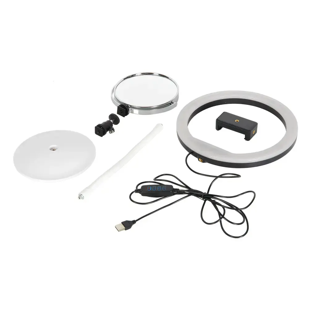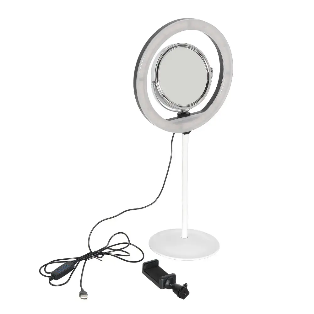 При помощи комплектных аксессуаров: шаровой мини-головке и держателя смартфона, можно вести съемку с помощью смартфона (шириной от 5 до 8 см) или небольшой DLSR или беззеркальной фотокамеры (диаметр внутреннего кольца 18 см). При этом происходит равномерно распределение света вдоль оптической оси объектива. Компактные размеры и вес осветителя 0.8 кг позволяют также использовать его как накамерный свет, прикрепляя к фотокамере через крепление «башмак» в основании комплектной шаровой мини-головки