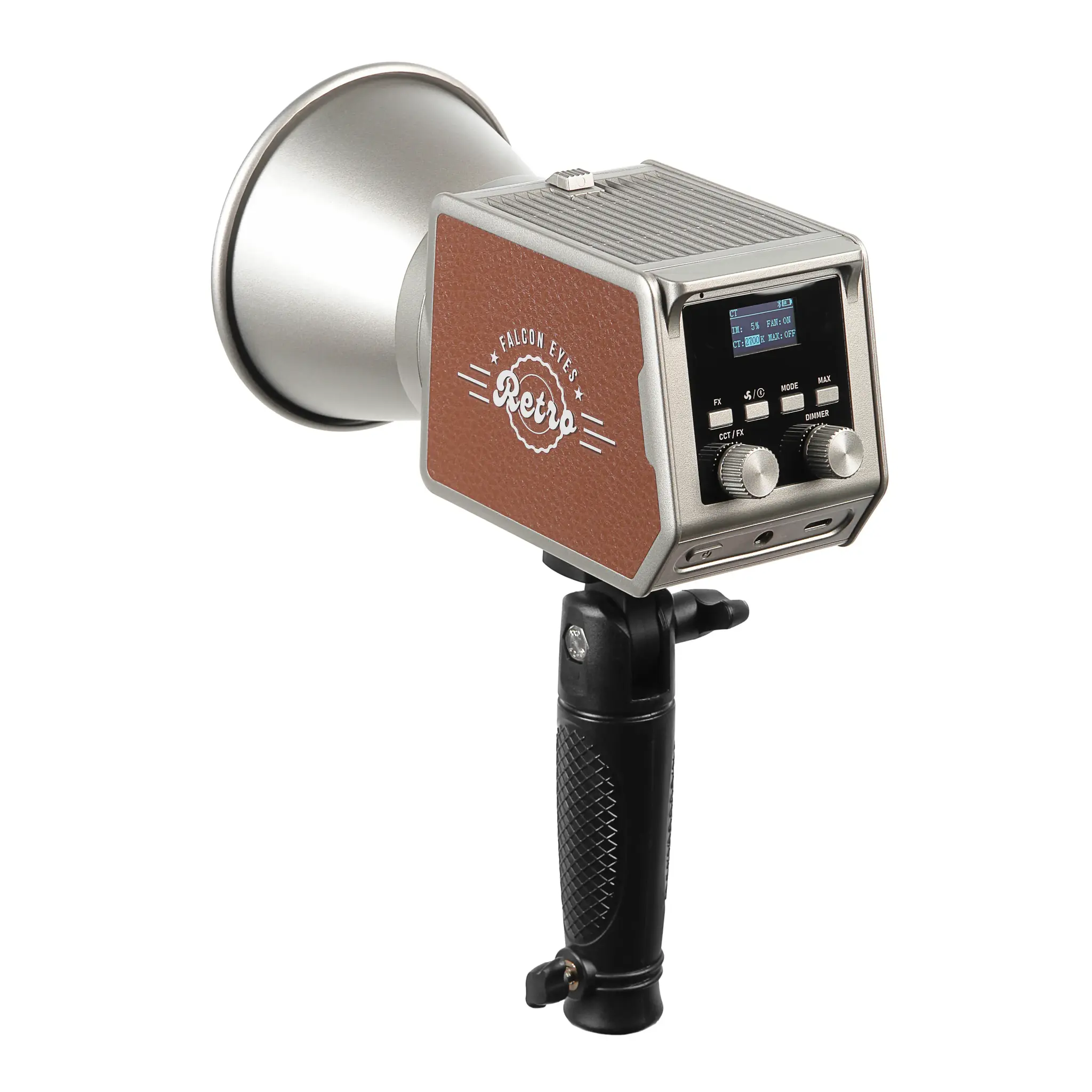 Retro 60R отличается элегантным дизайном с кожаной отделкой, что придает устройству стильный и оригинальный облик. Кроме того, винтажный дизайн осветителя привлекает внимание и позволяет использовать прибор как самостоятельный декоративный элемент кадра, гармонично интегрируясь в концепцию fashion-съемок и арт-проектов.
