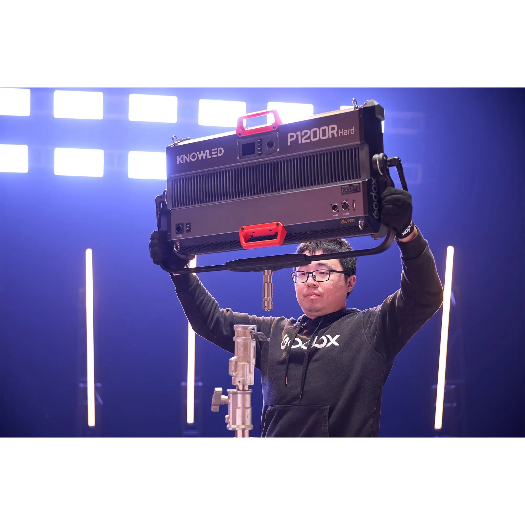 Godox Knowled P1200R Hard при достаточно компактных в своем классе размерах выдает мощный световой поток, что совместно с регулируемой цветовой температурой, режима цветного освещения RGB и множеством встроенных функций, удовлетворяет большинству потребностей в свете на съемочной площадке. Для создания всестороннего и сбалансированного освещения сцены рекомендуется использовать данный источник в сочетании с несколькими другими.