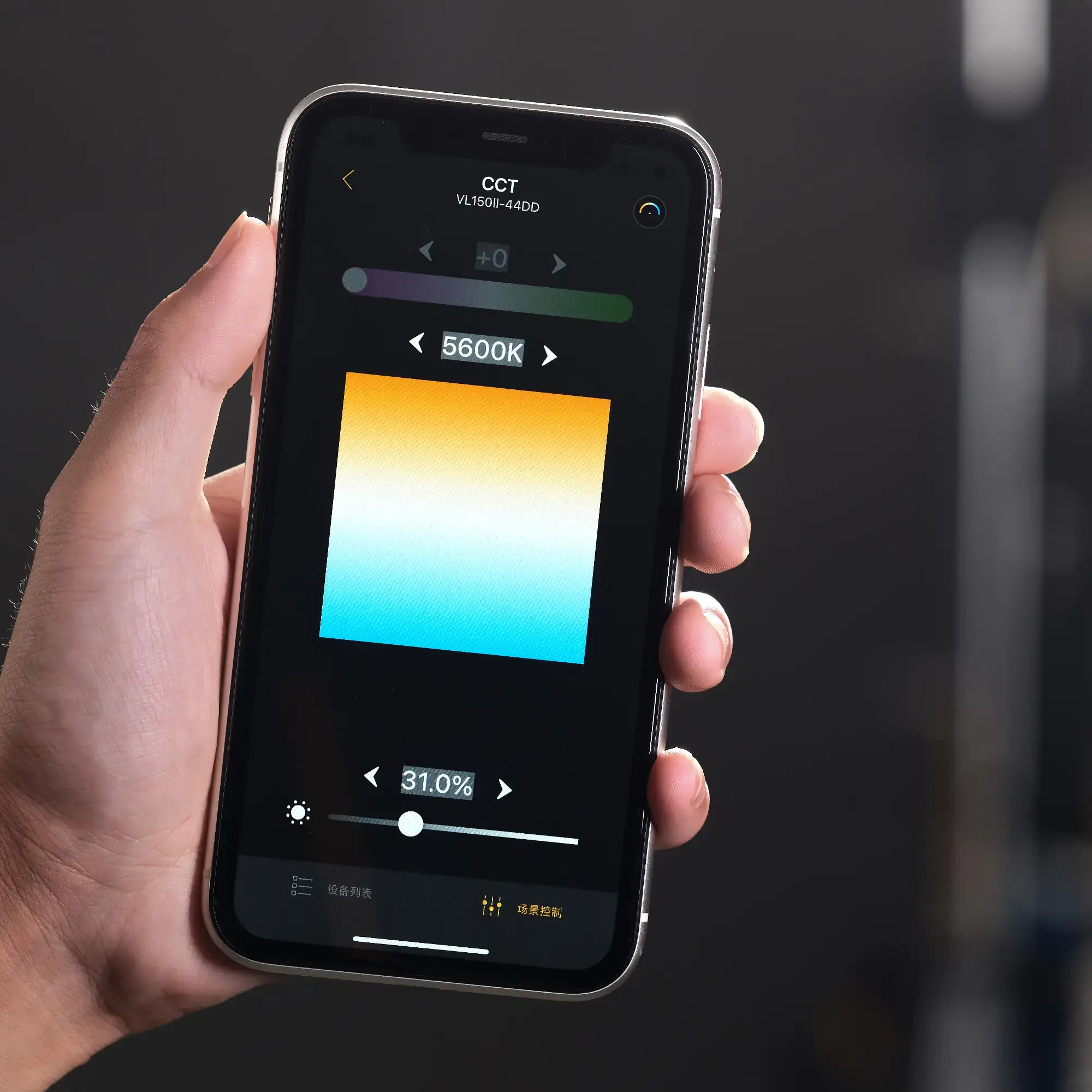 Благодаря обновленному встроенному беспроводному модулю 2.4ГГц и поддержке управления через Bluetooth, осветитель VL150II идеально вписывается в существующую систему управления Godox с помощью приложения Godox Light или пульта RC-A6. Теперь, с помощью VL150II, вы можете насладиться всеми преимуществами группового управления параметрами нескольких осветителей, чтобы создавать самые разнообразные световые схемы.