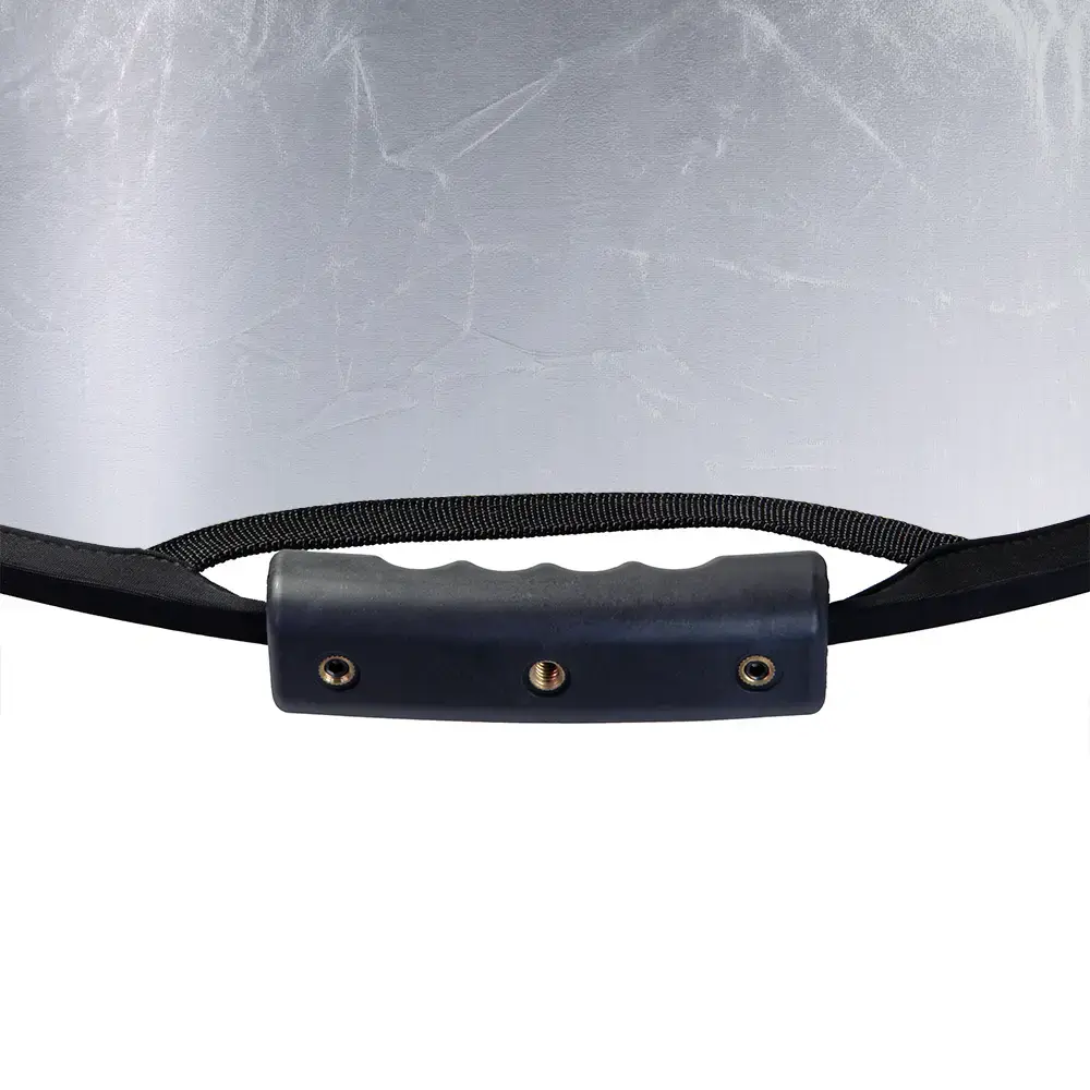 Стальной упругий каркас прошит по периметру капроновым карманом, диаметр отражателя в сложенном виде – 30 см. Две рукоятки, закрепленные на каркасе, оборудованы отверстиями с резьбой 1/4", что позволяет закрепить отражатель на штативах, стойках или любых других опорах, без использования специального держателя.