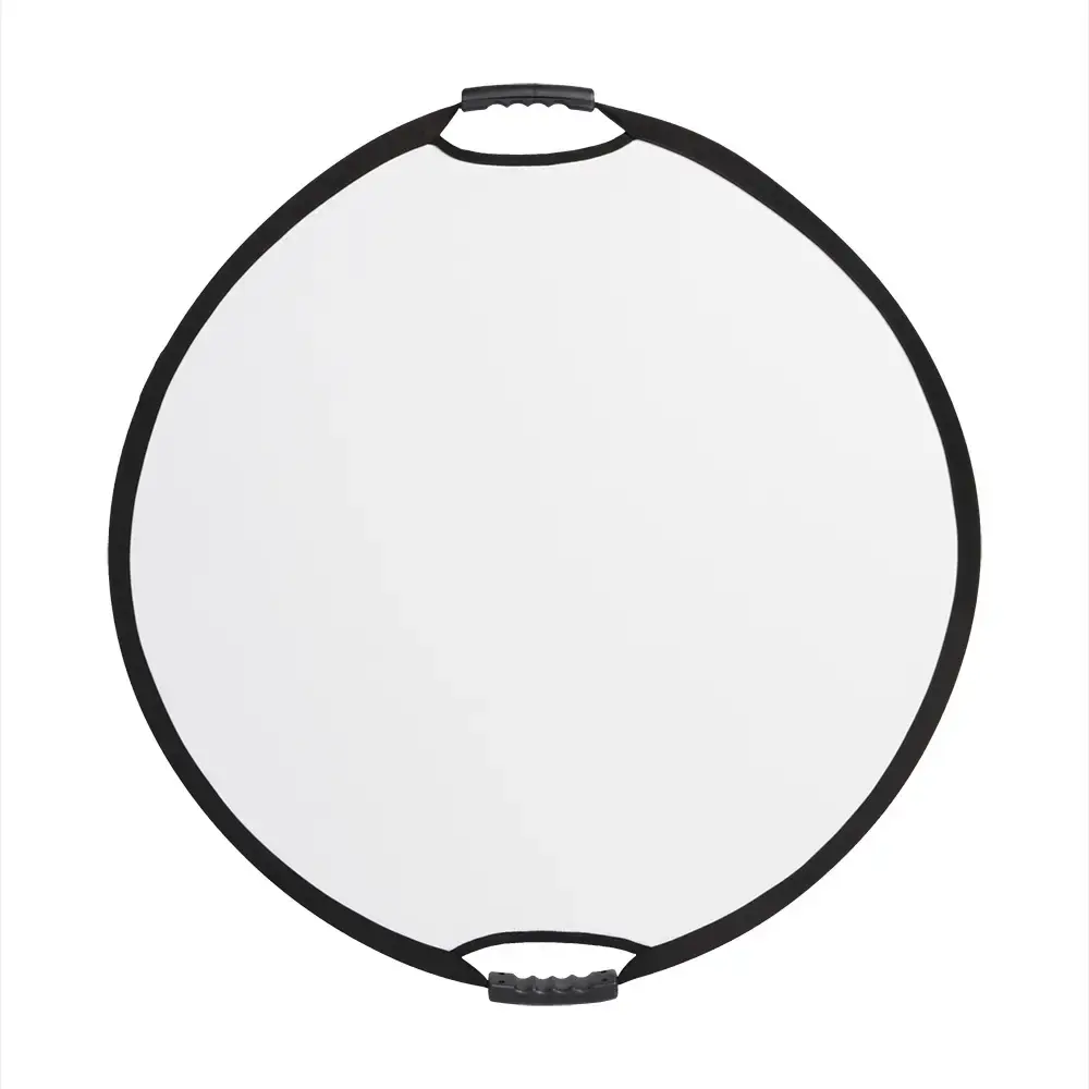 Стальной упругий каркас прошит по периметру капроновым карманом, диаметр отражателя в сложенном виде – 30 см. Две рукоятки, закрепленные на каркасе, оборудованы отверстиями с резьбой 1/4", что позволяет закрепить отражатель на штативах или любых опорах без использования специального держателя.