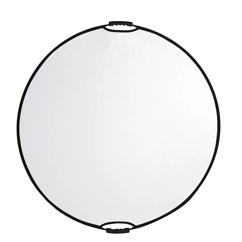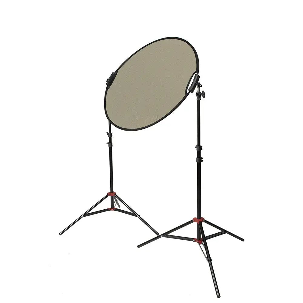 Стальной упругий каркас прошит по периметру капроновым карманом, диаметр отражателя в сложенном виде – 40 см. Две рукоятки, закрепленные на каркасе, оборудованы отверстиями с резьбой 1/4", что позволяет закрепить отражатель на штативах, стойках или любых других опорах, без использования специального держателя.
