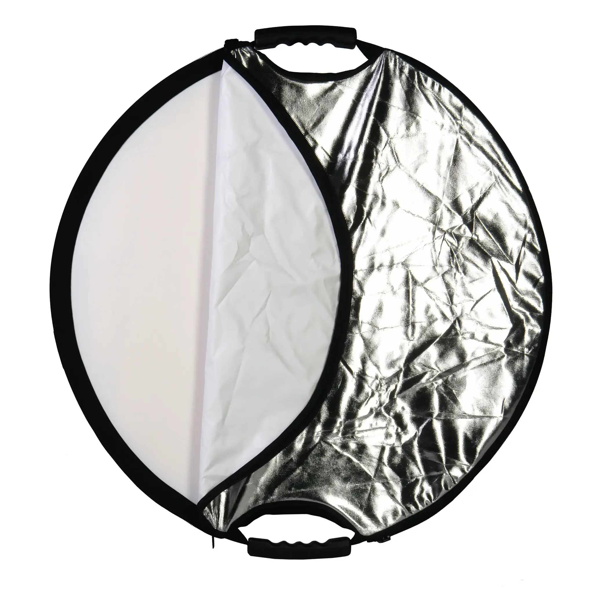 Стальной упругий каркас прошит по периметру капроновым карманом, диаметр отражателя в сложенном виде – 20 см. Две рукоятки, закрепленные на каркасе, оборудованы отверстиями с резьбой 1/4", что позволяет закрепить отражатель на штативах или любых опорах без использования специального держателя.