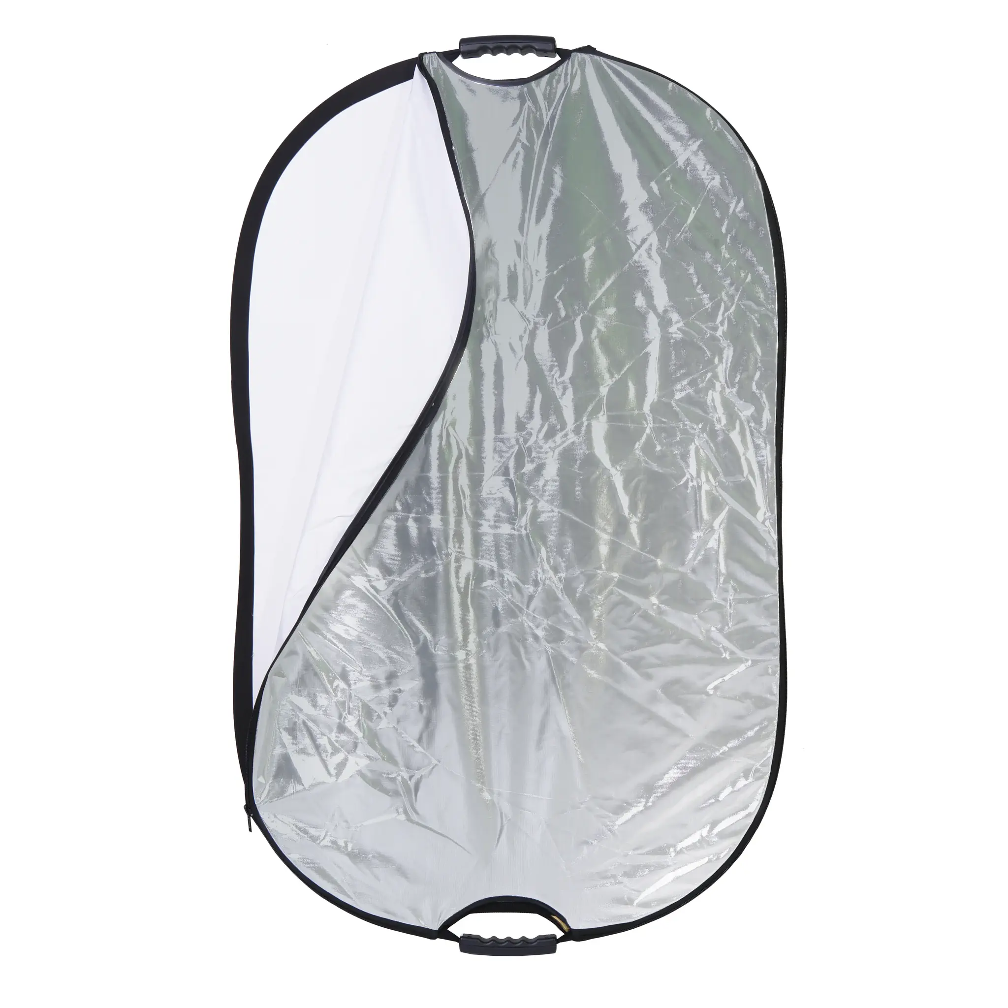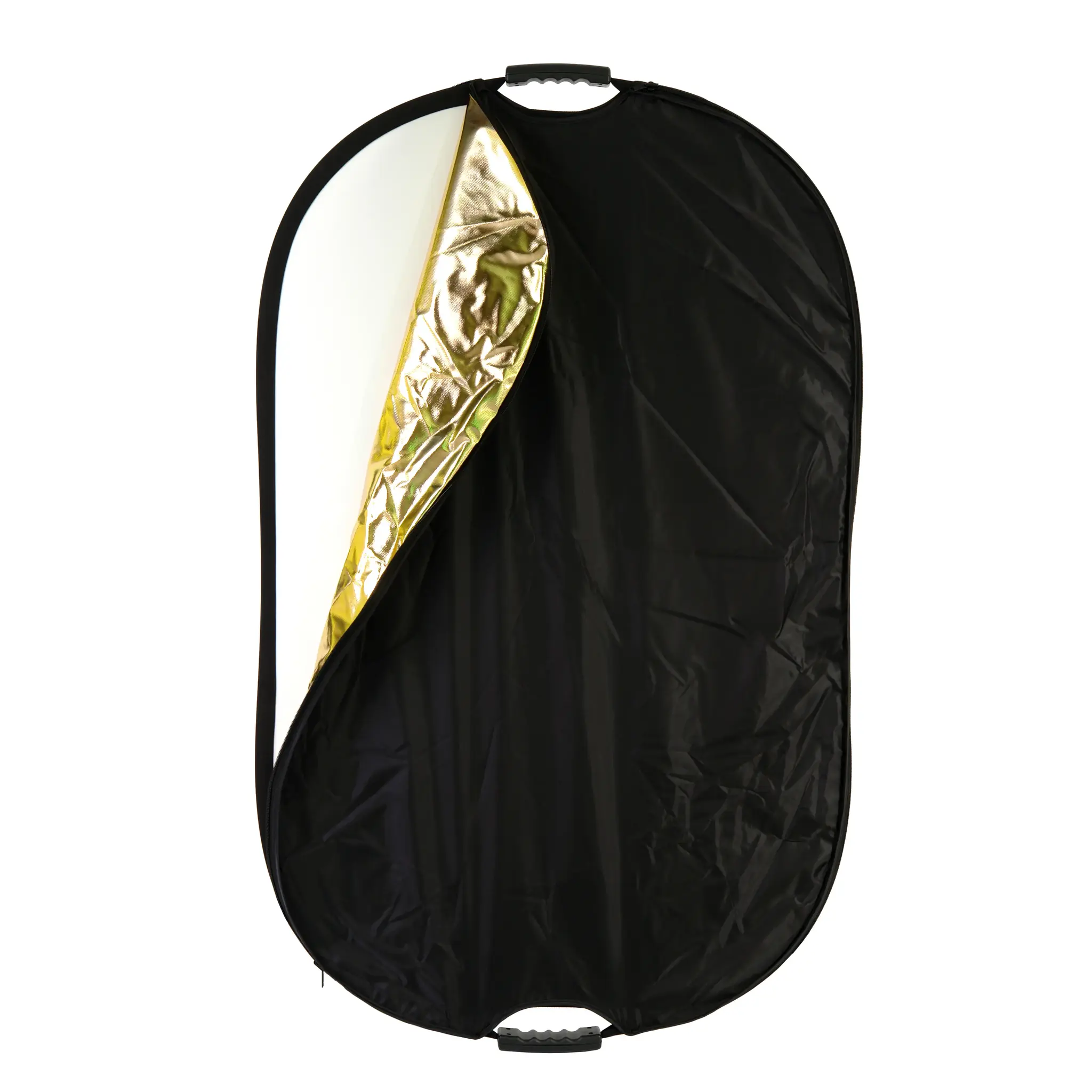Овальный отражатель 5 в 1: золотистый/серебристый/белый отражающий/ белый просвечивающий/черный. Размер 70х110 см, подходит для поясных портретов или подсветки отдельных участков кадра.
