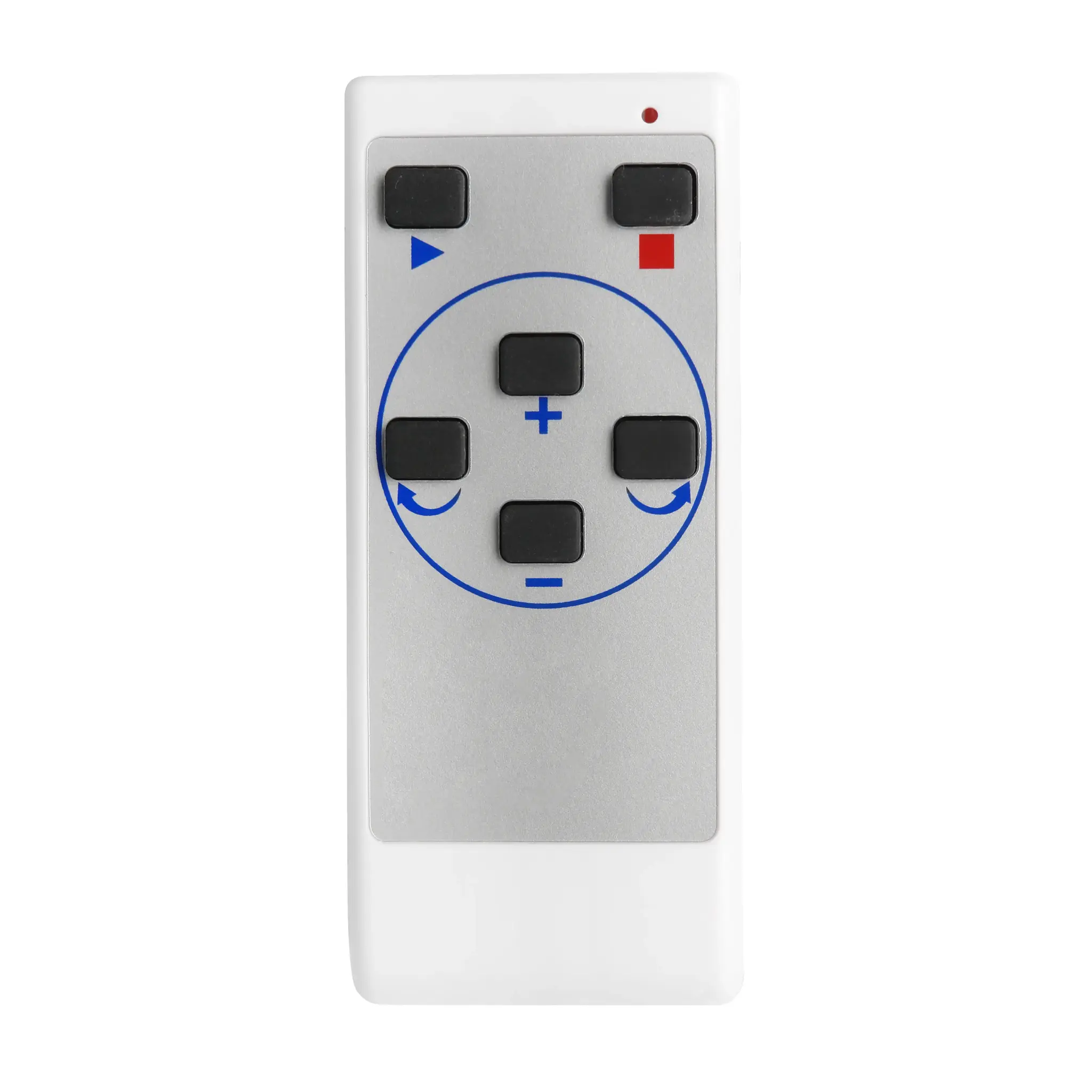 Пульт дистанционного управления также позволят запускать и останавливать вращение платформы, менять направление и скорость вращения. Для управления столом используется 6 клавиш: запуск, остановка, выбор направление вращения в одну и другую сторону, увеличения или уменьшения скорости.