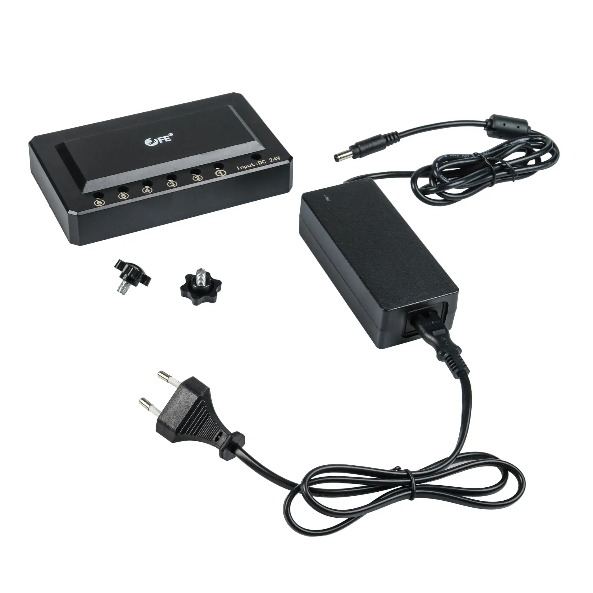 Подъемник состоит из двух кронштейнов, приемника, шести держателей с моторами и шести держателей со скользящей обоймой. За счет электромоторов со встроенными редукторами пользователь может раздельно поднимать и опускать установленные на подъемник фоны. Скорость вращения установленного рулона составляет приблизительно 1 об/сек.Питание Falcon Eyes B-6MR осуществляется через приемник от сети постоянного тока с помощью входящего в комплект сетевого адаптера.