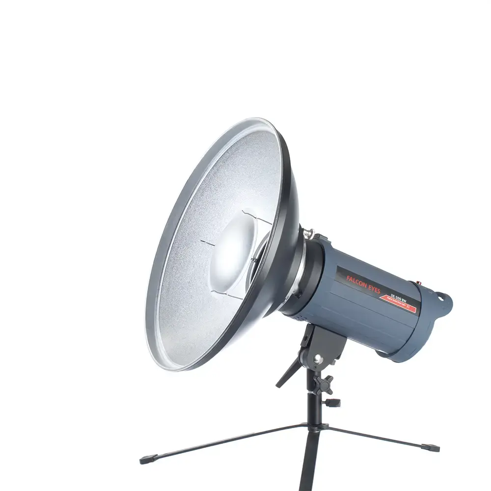 Хорошая альтернатива мягким софтбоксам — рефлектор FalconEyes SR-41T (BW), так называемая портретная тарелка (beauty dish), очень популярная в съемках в стиле фэшн и гламур.