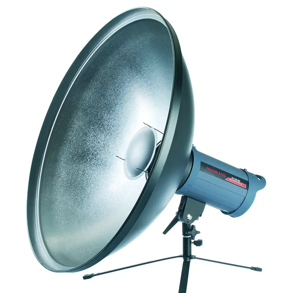 Хорошая альтернатива мягким софтбоксам — рефлектор FalconEyes SR-69T (BW), так называемая портретная тарелка (beauty dish), очень популярная в съемках в стиле фэшн и гламур.