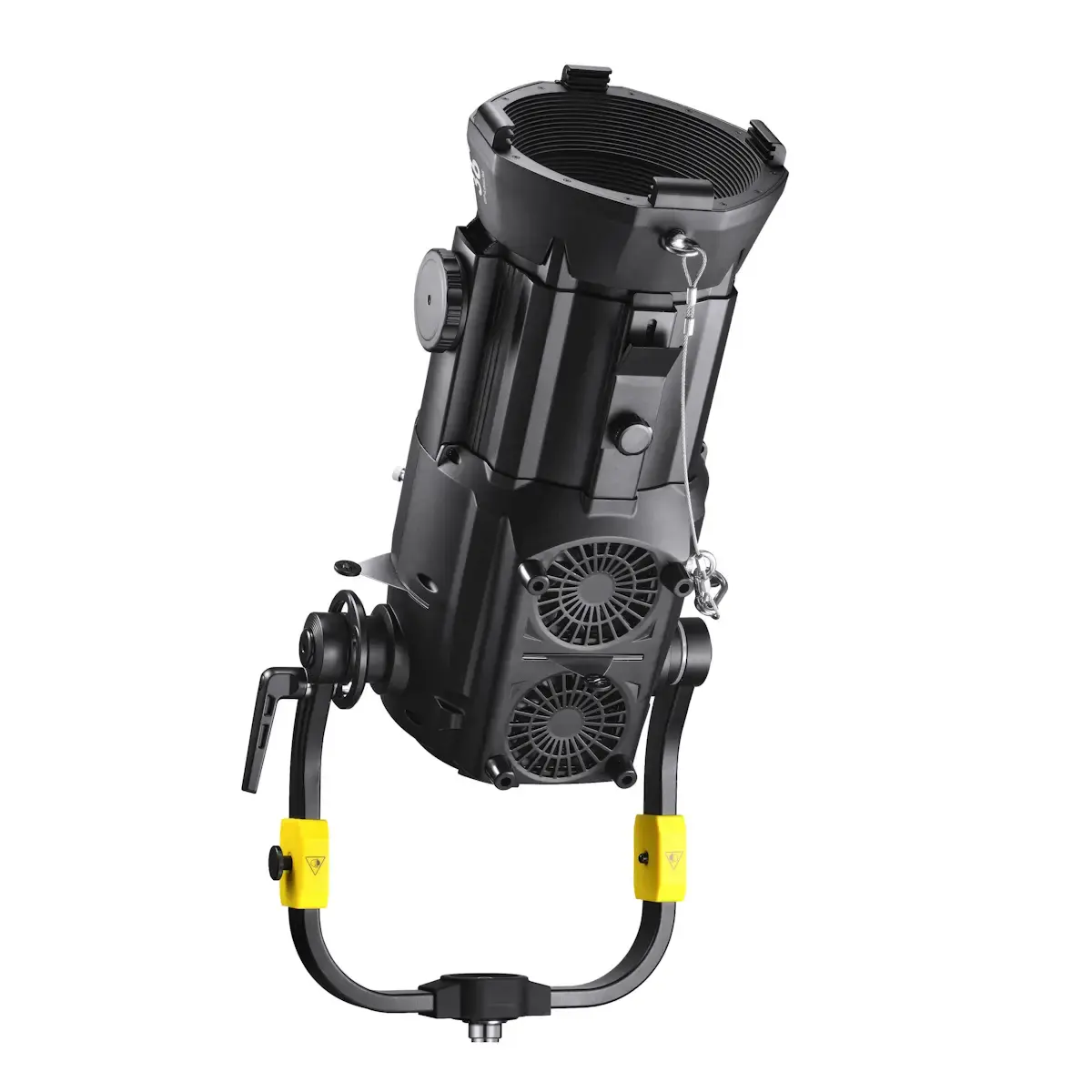 Проекционная насадка Godox Knowled GP имеет встроенную систему охлаждения, которая (благодаря электронным контактам на креплении G-Mount) питается от осветителя. Два мощных малошумных вентилятора, входящие в систему охлаждения, обеспечивают стабильную и надежную совместную работу с осветительным прибором.