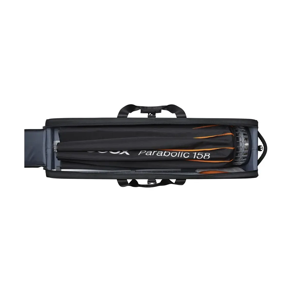 Параболический рефлектор малый размер и небольшой вес, помещается в комплектную сумку Godox CB35, благодаря чему подойдет и для съемок в небольшой студии и для выездной съёмки.