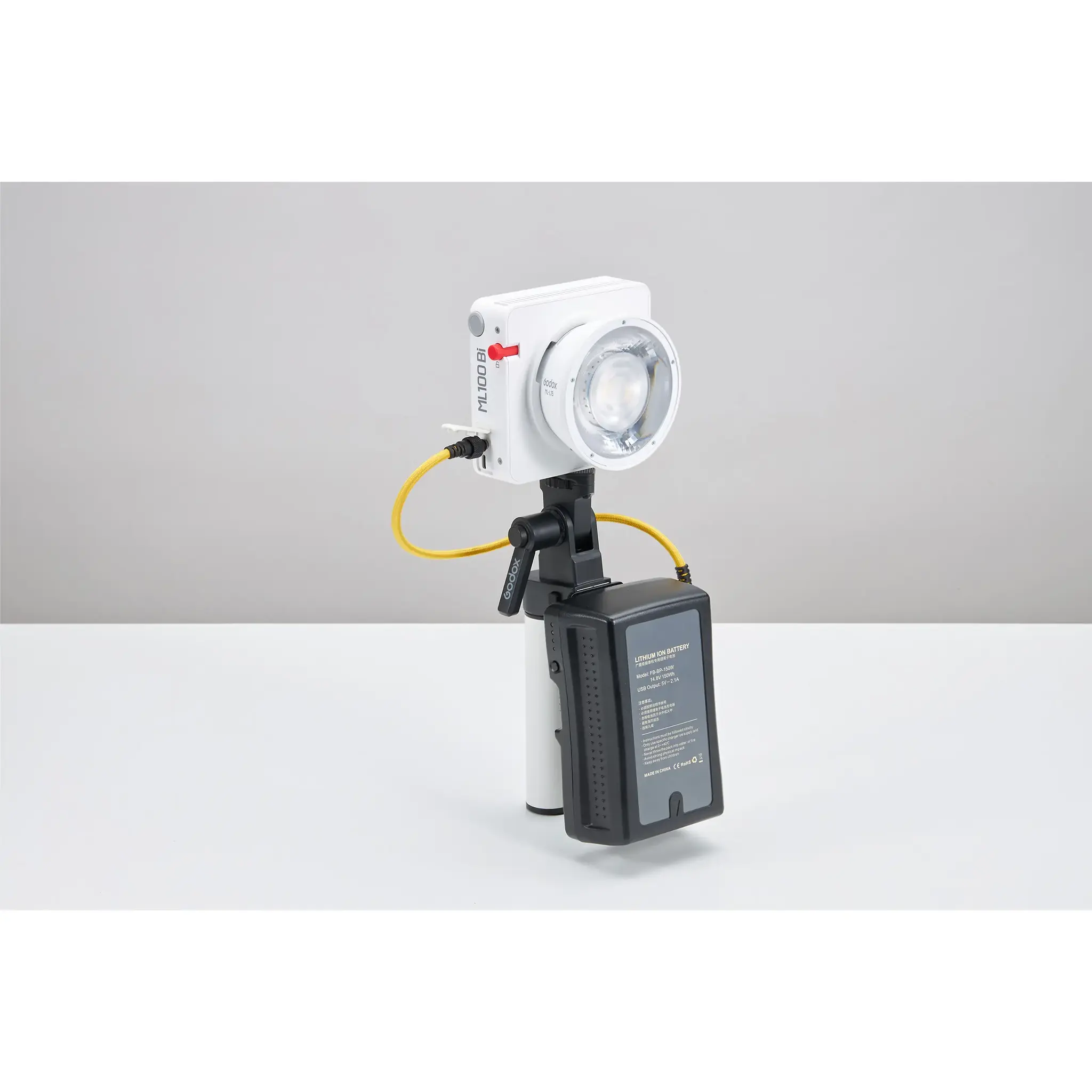 Godox AK-B02 – съемная рукоятка с аккумуляторной площадкой аккумулятора V-mount (приобретается отдельно) служит для питания осветителя ML60II Bi и ему подобных (ML100Bi/ML100R). Независимо от того, идет ли съемка в студии или на выезде, эта рукоятка позволяет использовать осветительный прибор без необходимости подключения к сети переменного тока, что обеспечивает полную мобильность.