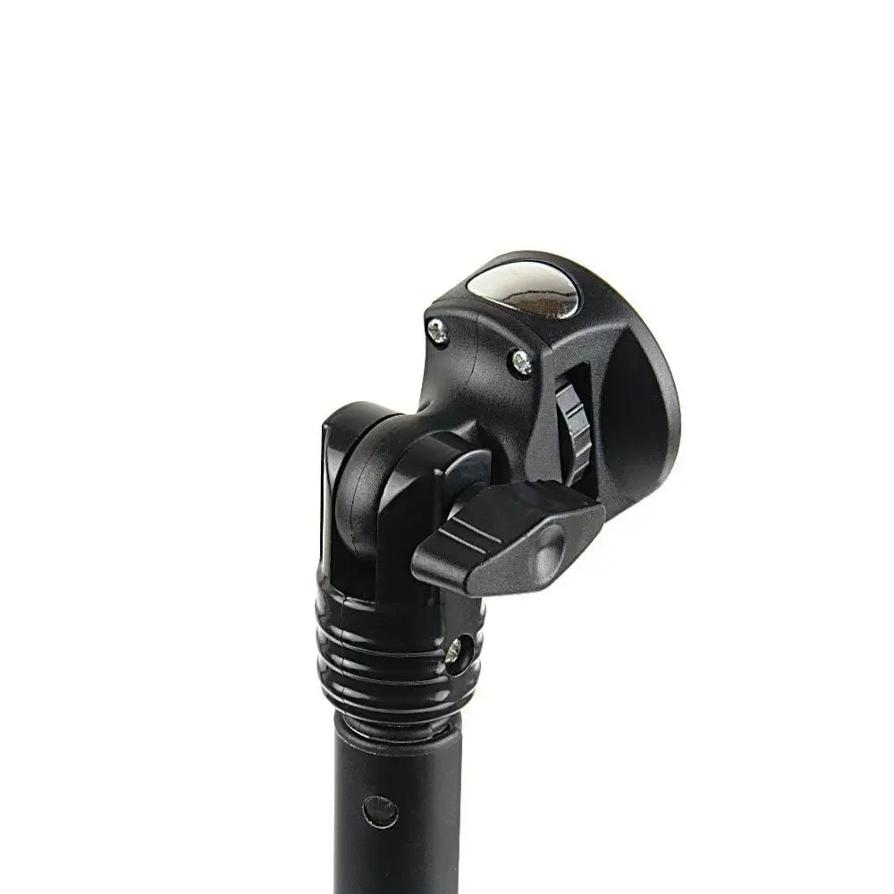 При сложенных ножках, штатив можно использовать как палку для селфи длиной от 44,5 до 128 см, её удобно держать в руках т. к. диаметр штатива со сложенными ножками составляет всего около 50 мм.