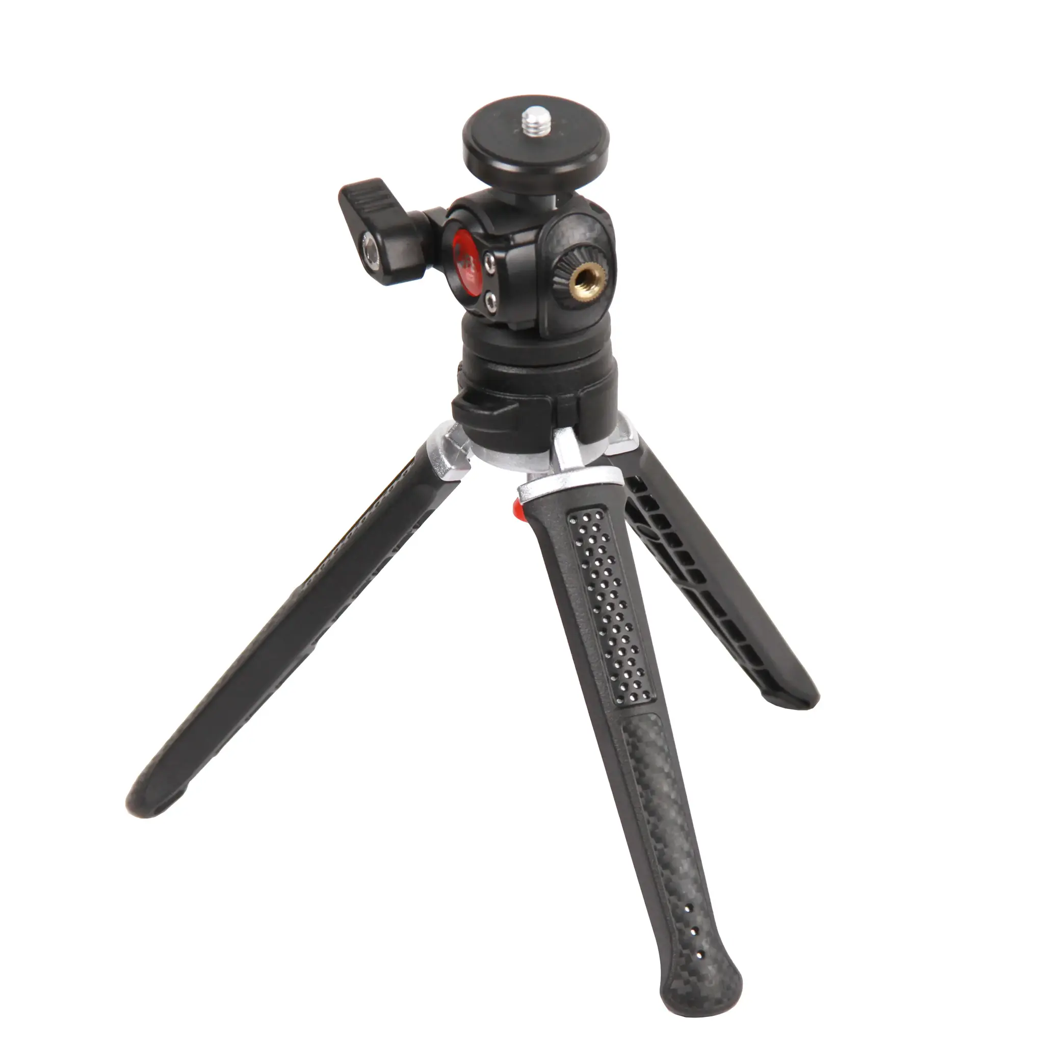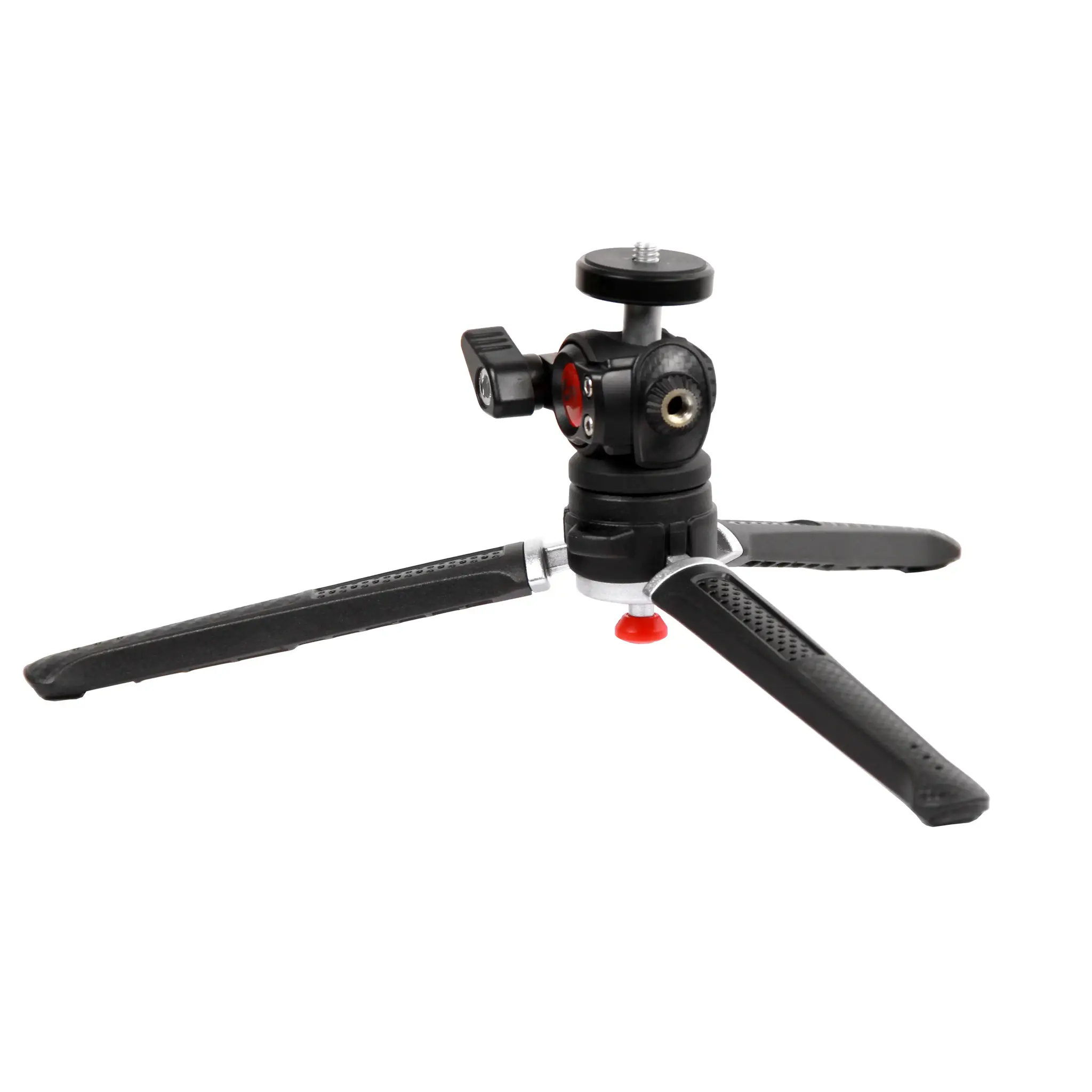 Штатив имеет установочный винт 1/4'', на который можно закрепить фотокамеру или другое устройство, комплектную шаровую миниголовку для регулировки угла наклона оборудования или держатель смартфона по своему желанию.