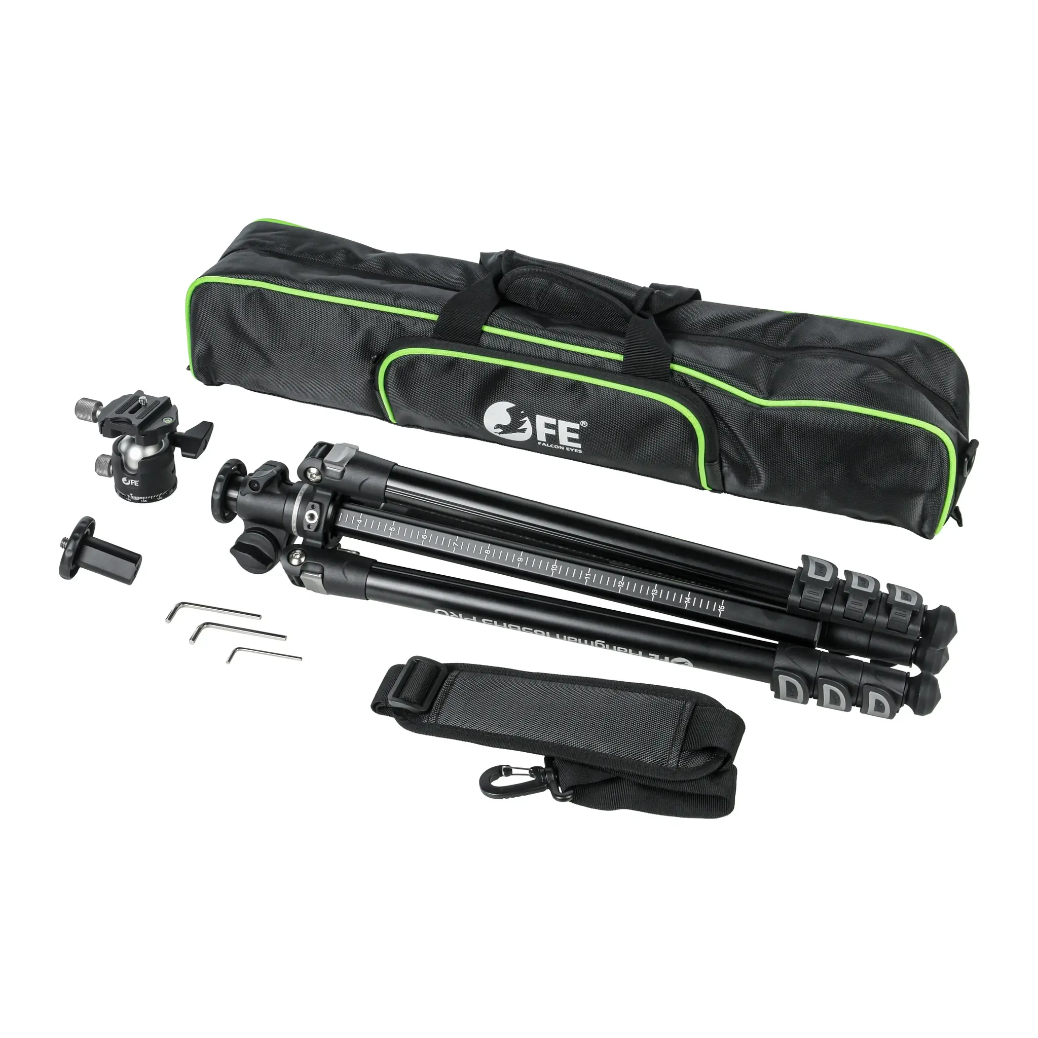 Для переноски и хранения штатив комплектуется сумкой-чехлом на молнии и с регулируемым по длине наплечным ремнем. Вес комплекта в чехле – 2.7 кг.