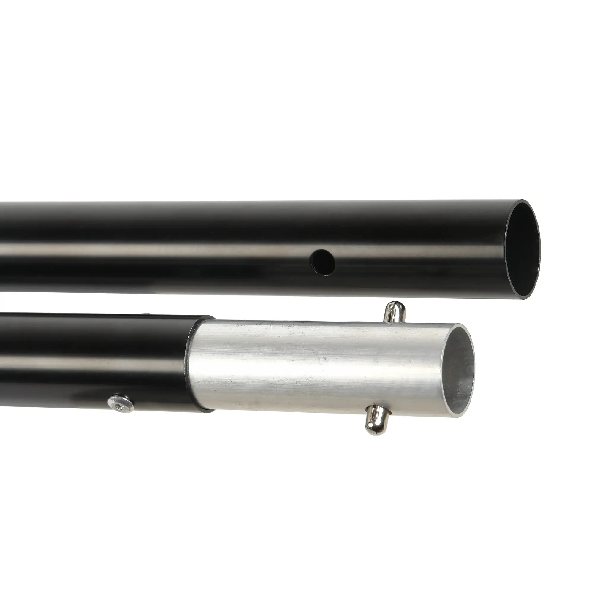 Перекладина длиной 200 см составляется из трех секций, состоящих из алюминиевых трубок диаметром 22 мм, соединенных между собой подпружиненными фиксаторами.