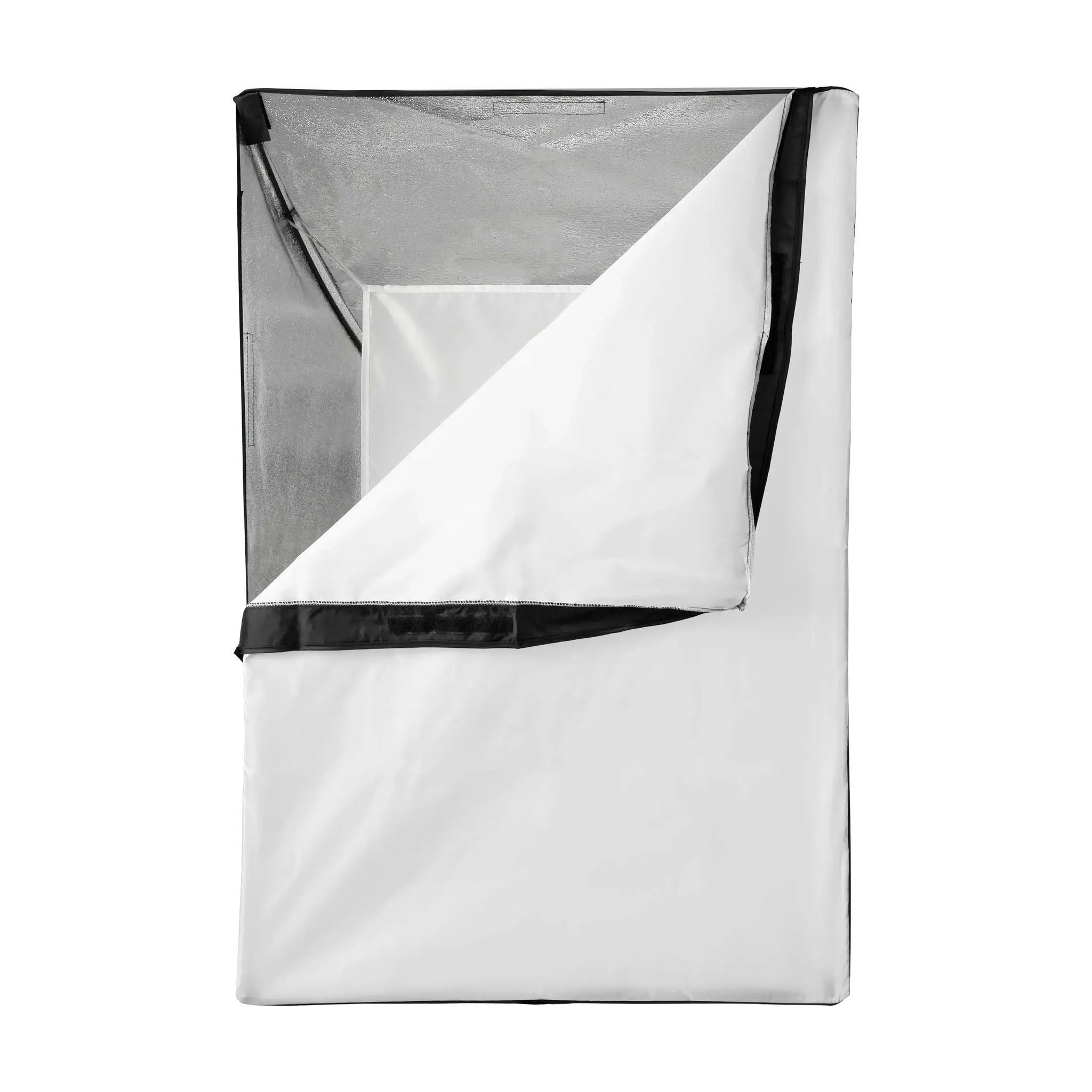 Тент-отражатель софтбокса изготавливается из специальной синтетической ткани с внутренней серебристой светоотражающей поверхностью. Серебристая поверхность обеспечивает равномерное распределение светового потока внутри софтбокса с минимальными потерями на светоотражение.