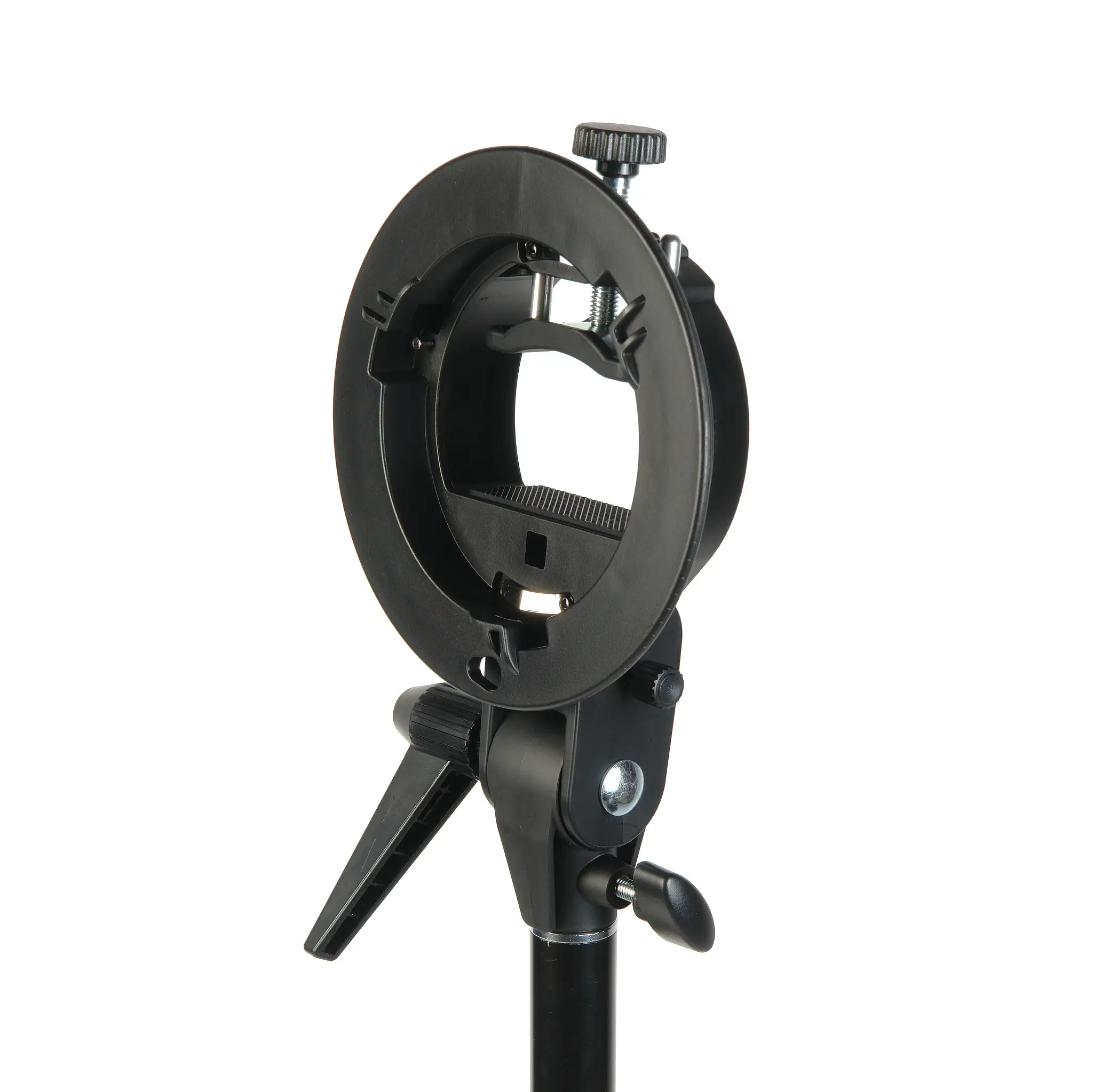 Кронштейн-адаптер S изготовлен из прочного пластика и подходит для установки накамерных вспышек с прямоугольной головкой, таких как V860II, TT685, TT600 и т.д. Кронштейн-адаптер S устанавливается на стандартную стойку 5/8 дюйма и позволяет плавно регулировать угол наклона вспышки в пределах 180°. На кронштейне спереди находится крепление Bowens, которое позволяет устанавливать различные светомодификаторы: софтбоксы, конусы, портретные тарелки, шторки и т. д. В нижней части кронштейна находится отверстие для крепления фотозонта.